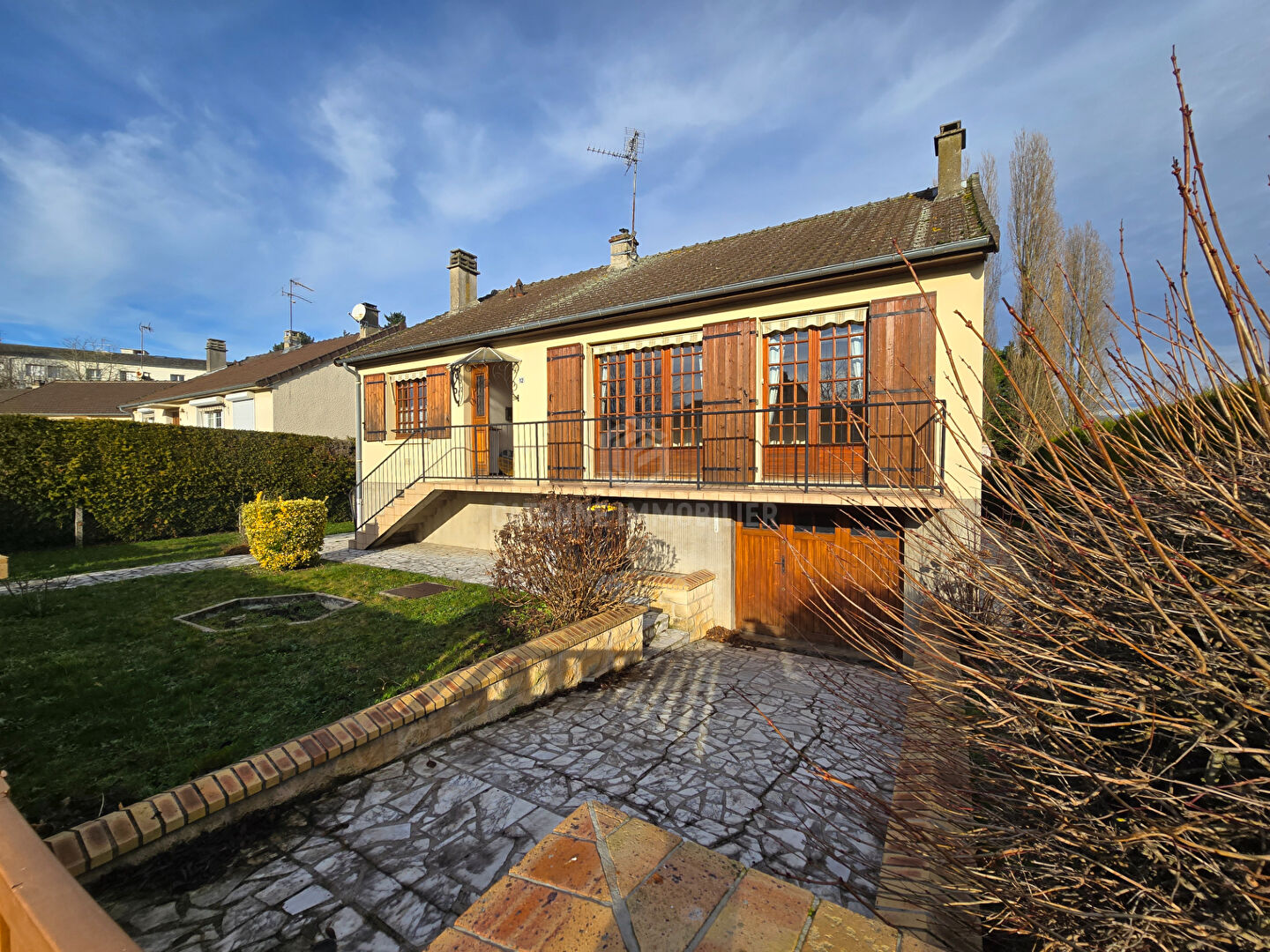 CREPY-EN-VALOIS, ce PAVILLON DE PLAIN-PIED sur sous-sol total, à décorer à votre goût , situé proche de la gare et des écoles primaires et lycée, offre une entrée, une cuisine aménagée, un vaste séjour/salle à manger de 28 m² avec cheminée, un couloir dessert une salle d'eau et trois chambres.