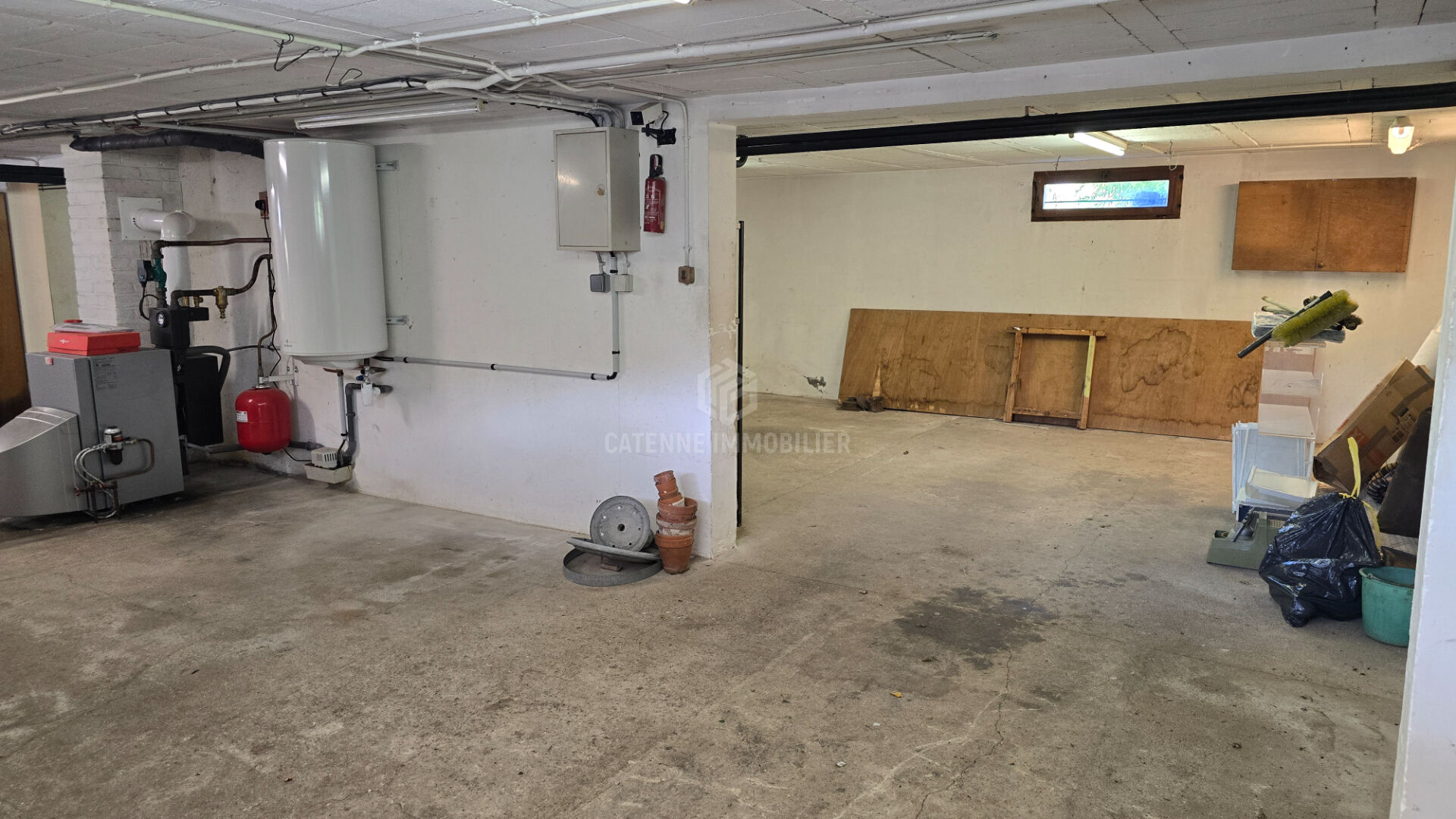 Le sous-sol est total, divisé en une buanderie, un garage trois voitures, une pièce.