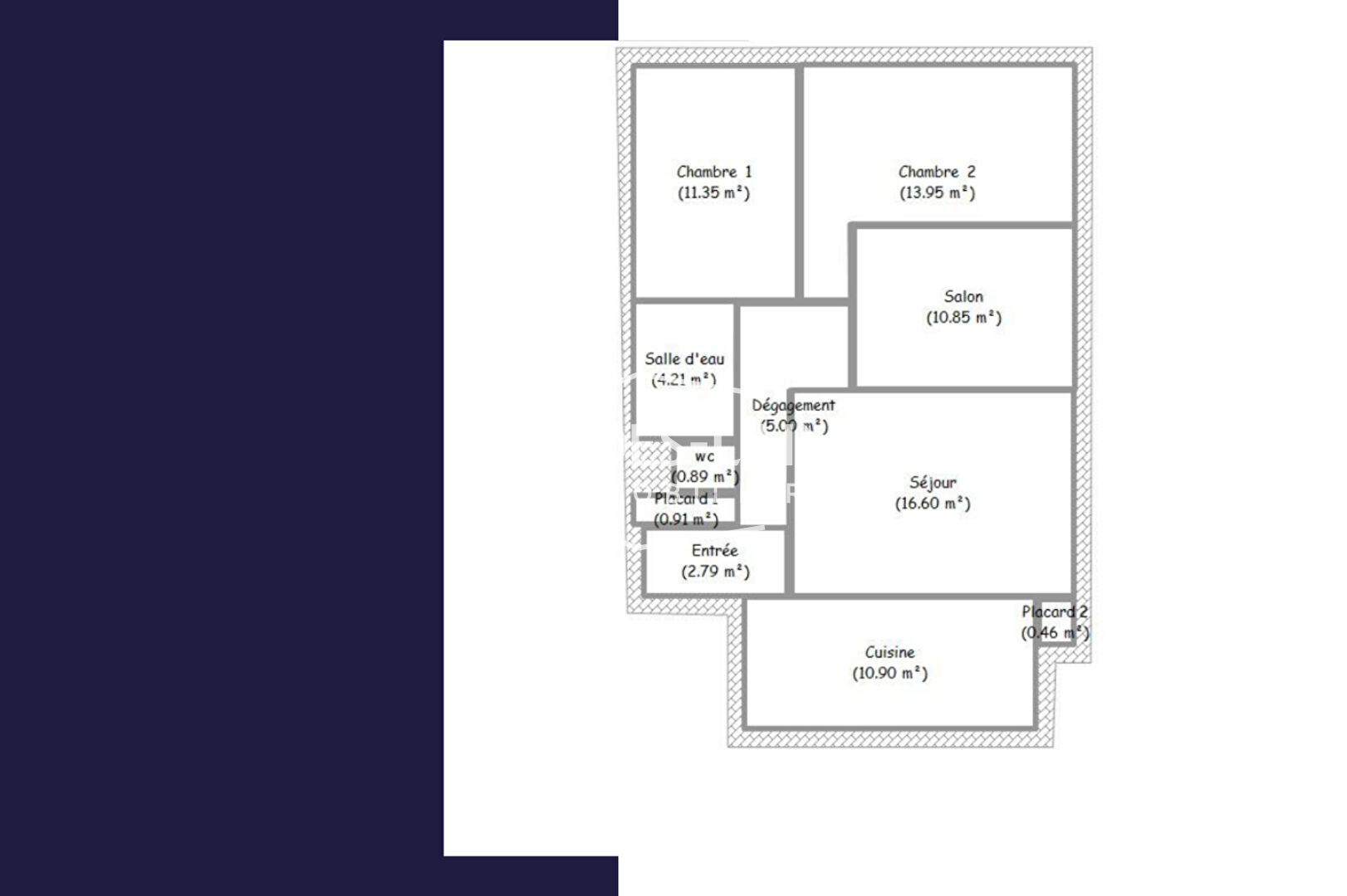 Cet appartement d'une surface de 77m² est composé de la façon suivante : une entrée, une cuisine aménagée avec balcon, un séjour-salon, deux chambres, une salle d'eau, un WC.