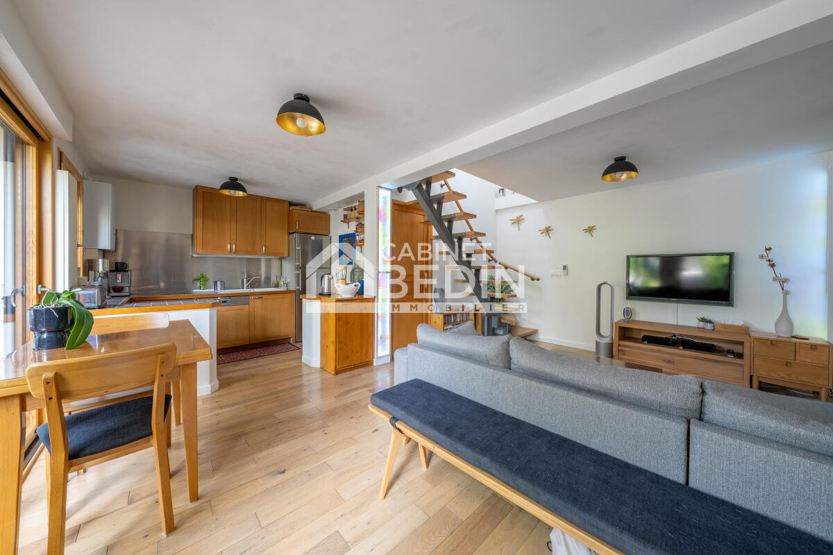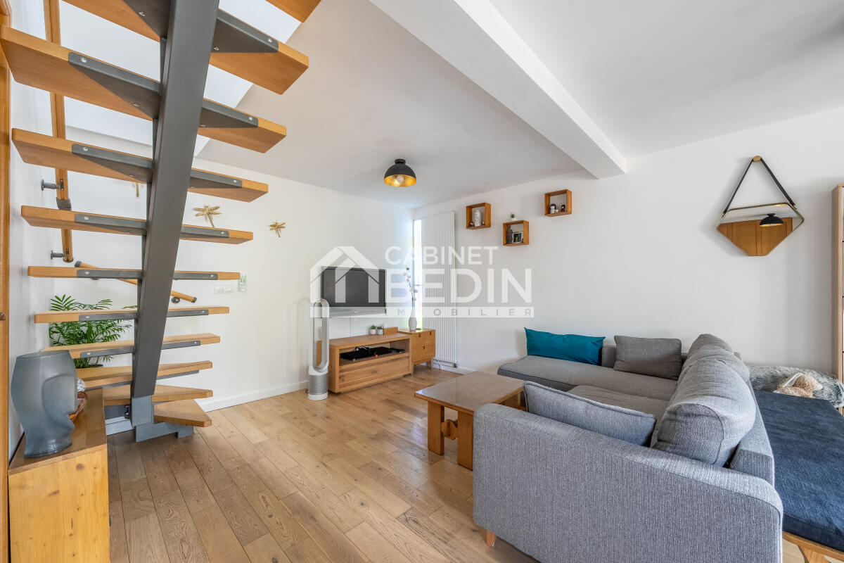 Exclusivité CABINET BEDIN - A 900 m de Talence Centre Forum - Maison T3. A 900 m de Talence Centre Forum - Maison avec jardinet, belle terrasse et coin jacuzzi - Elle comprend une entrée sur séjour avec cuisine ouverte aménagée et équipée, salle d'eau avec coin buanderie - A l'étage, 2 chambres et un toilette avec lave mains - Très belle rénovation A visiter sans tarder . Les informations sur les risques auxquels ce bien est exposé sont disponibles sur le site Géorisques : www. georisques. gouv. fr. Montant estimé des dépenses annuelles d?énergie pour un usage standard : entre 432 et 584 Euros/an (année de référence 2023)