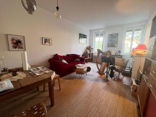 Ce bien se compose d'un grand séjour sans vis-à-vis (donnant sur une cour intérieure), d'une grande cuisine séparée, de deux chambres dont une qui fait 16 m2 et d'une salle de bain. WC séparé.