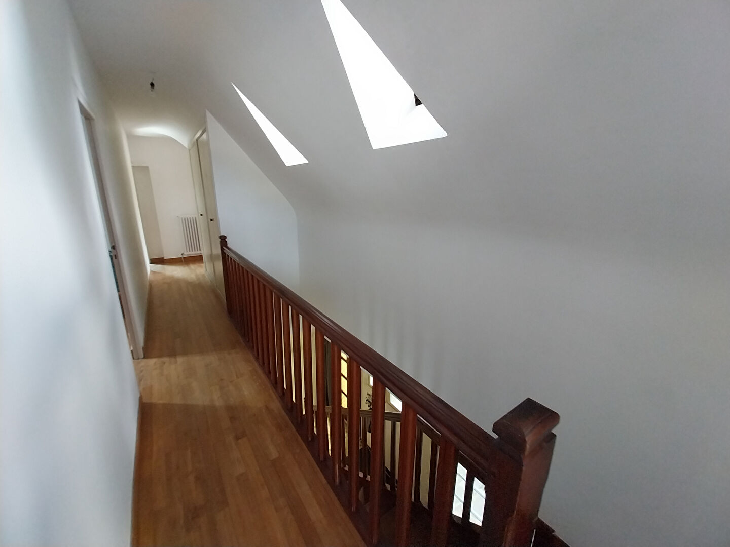 - à l'étage :le dégagement mezzanine donne accès aux trois chambres, (dont une grande chambre avec placard et bureau , une salle de bains avec WC séparés.