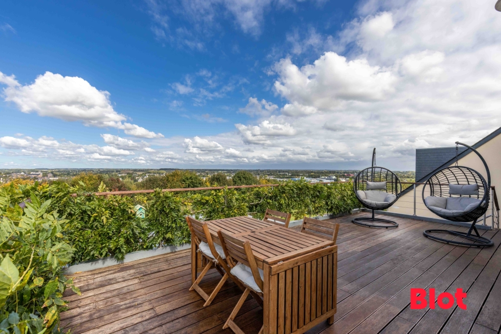 Au rez-de-chaussée, une entrée s'ouvre sur un vaste séjour lumineux de plus de 90 m² avec cuisine aménagée ouverte, prolongé par une terrasse offrant une vue dégagée. Une suite parentale avec dressing, salle de bain et accès direct au jardin complète ce niveau.