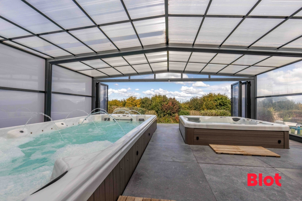 Pour vos moments de détente, la maison dispose de deux spas sous dôme, un spa de nage et un spa de relaxation.