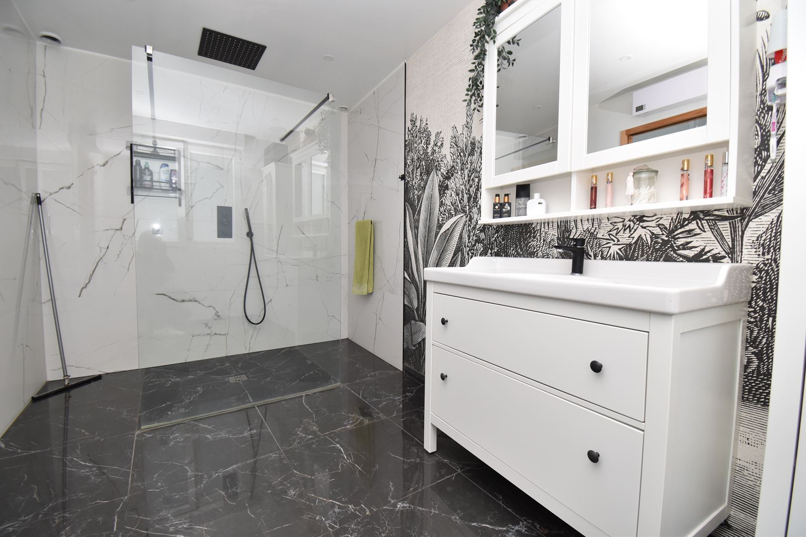 - Rdc : Hall d'entrée, séjour de 57m2 ouvert sur une cuisine équipée de 31m2, arr-cuisine, salle de douche, lingerie de 7m2, chambre de 18m2, wc