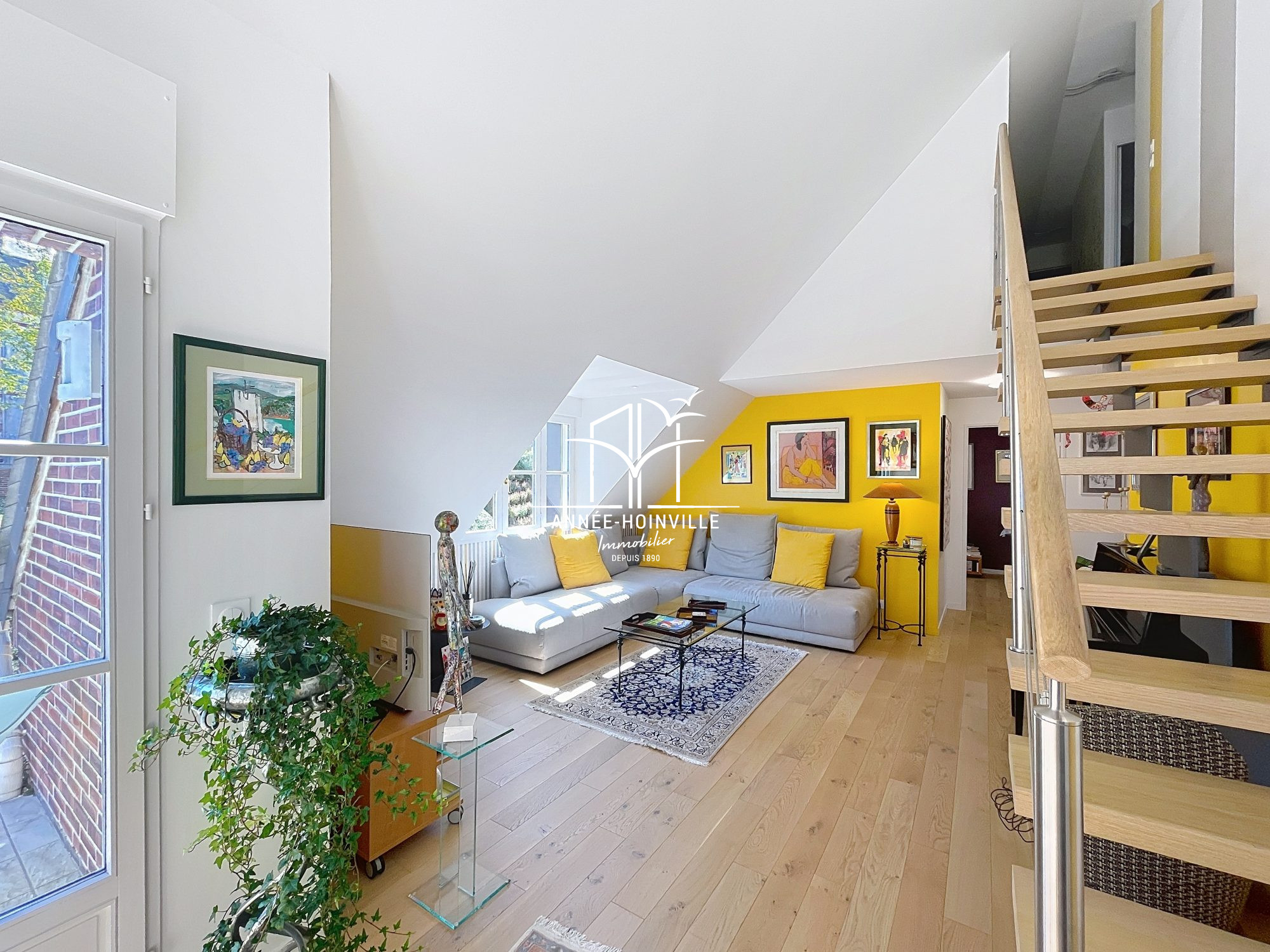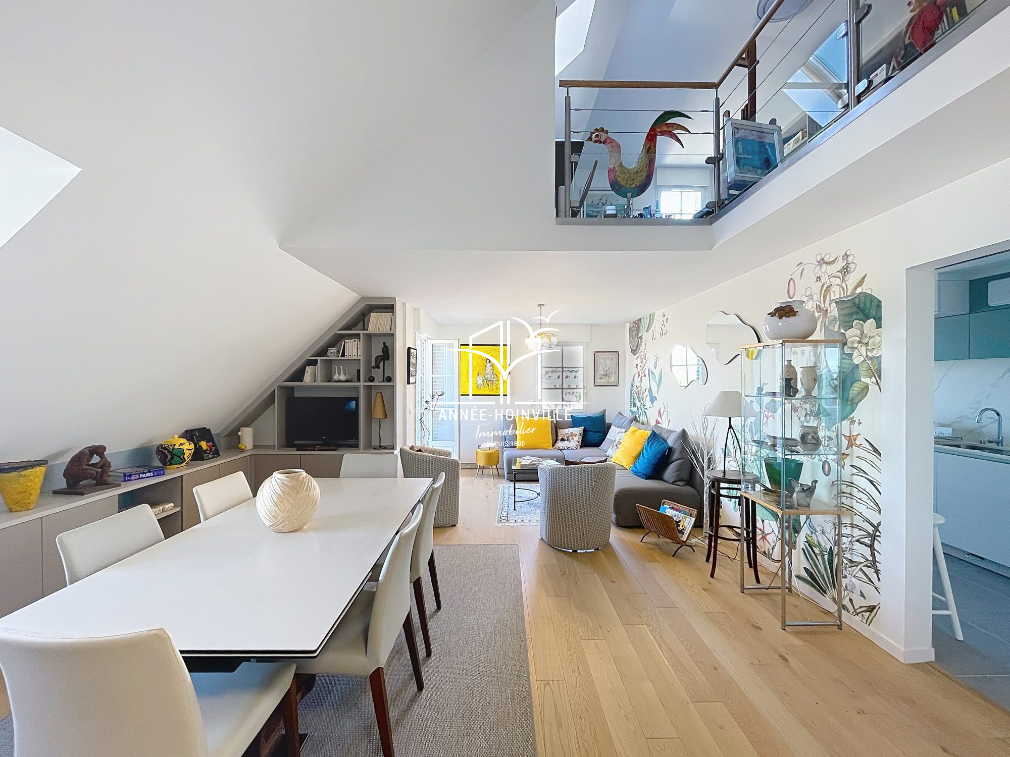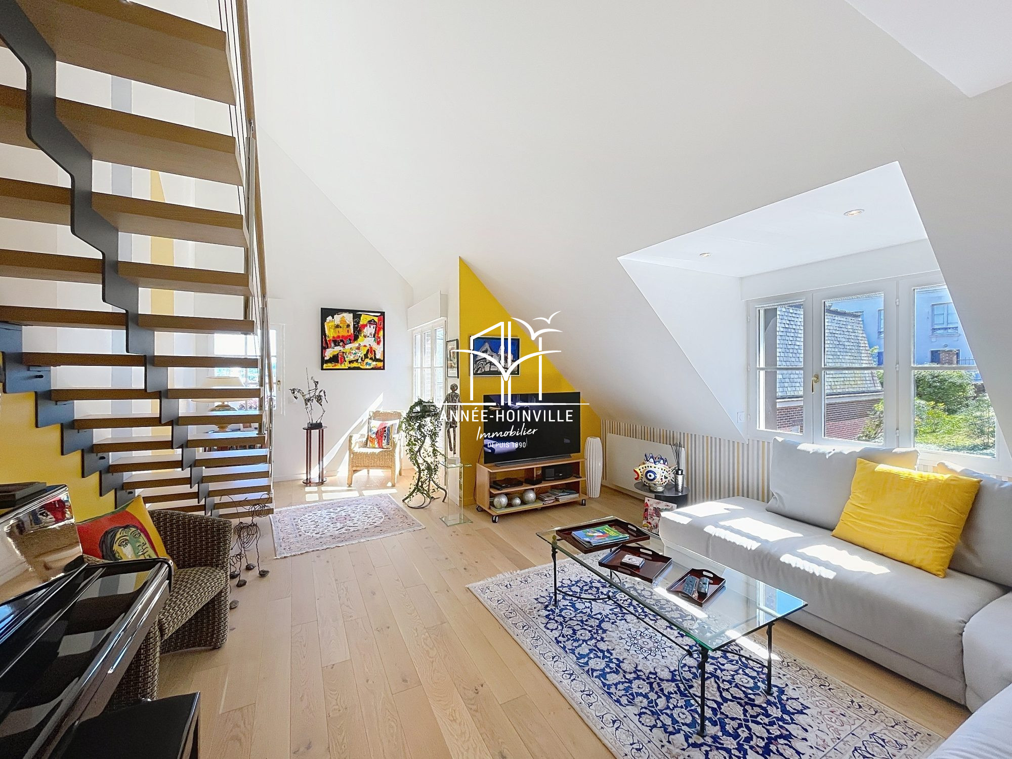 ANNÉE-HOINVILLE Immobilier vous présente, dans un environnement paisible et recherché de Honfleur, ce magnifique appartement en duplex de 185 m², offrant une vue dégagée exceptionnelle sur la mer et le Pont de Normandie.