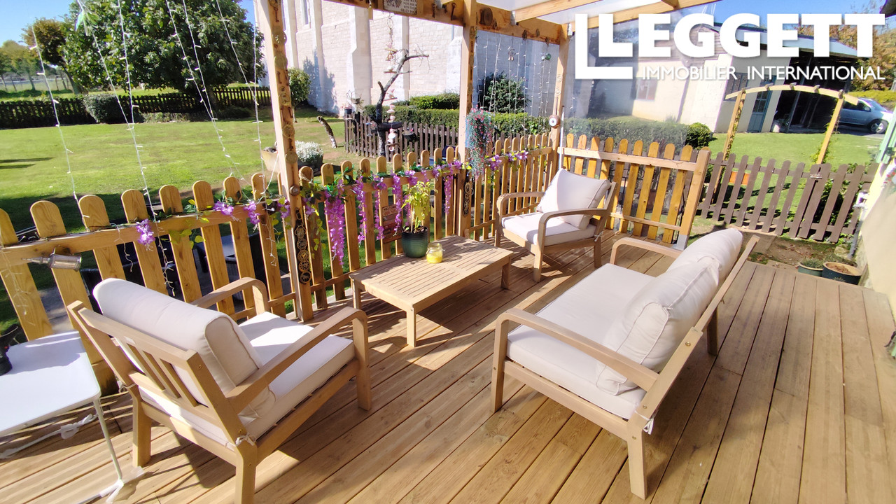 A40324HUM86 - Une propriété moderne avec un logement de plain-pied et un grand sous-sol (même superficie que la maison) qui comprend un garage. La propriété est située dans un joli village près des villes de Ruffec et Civray.