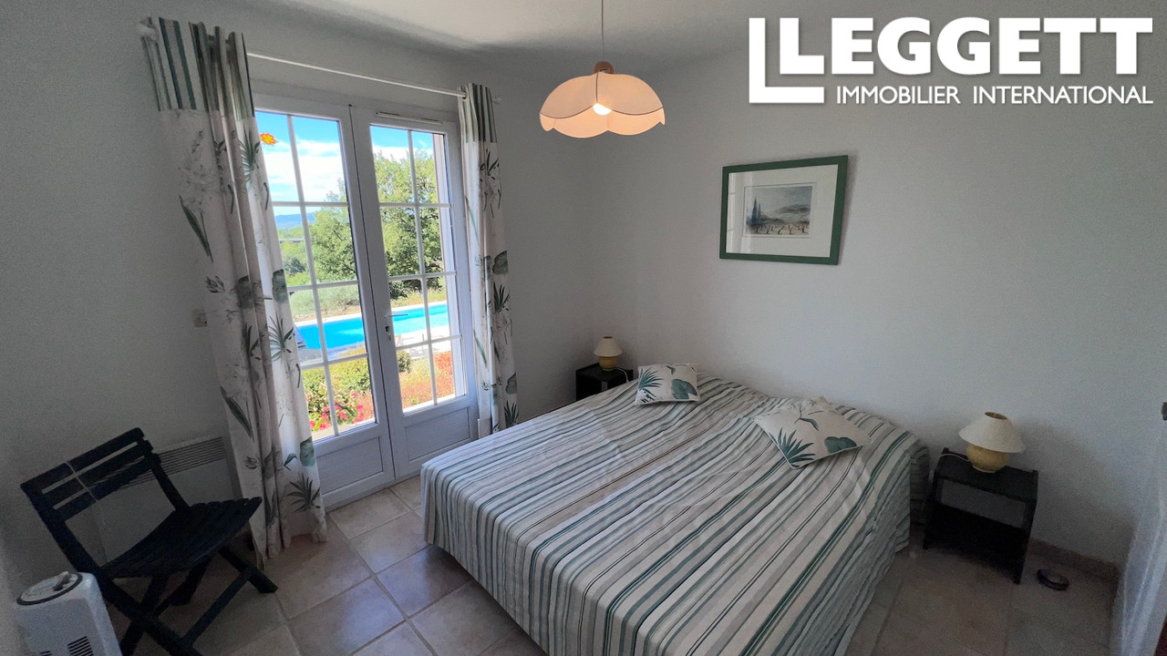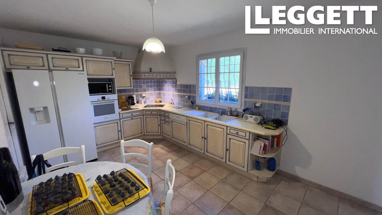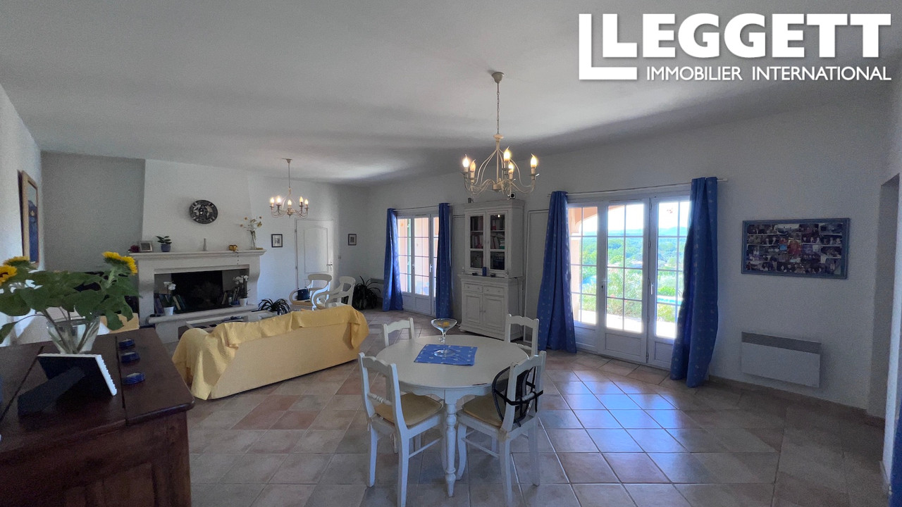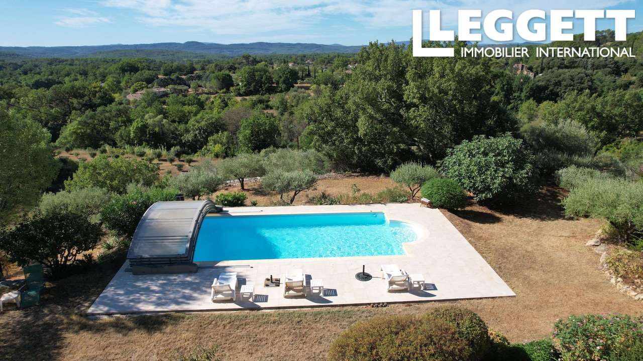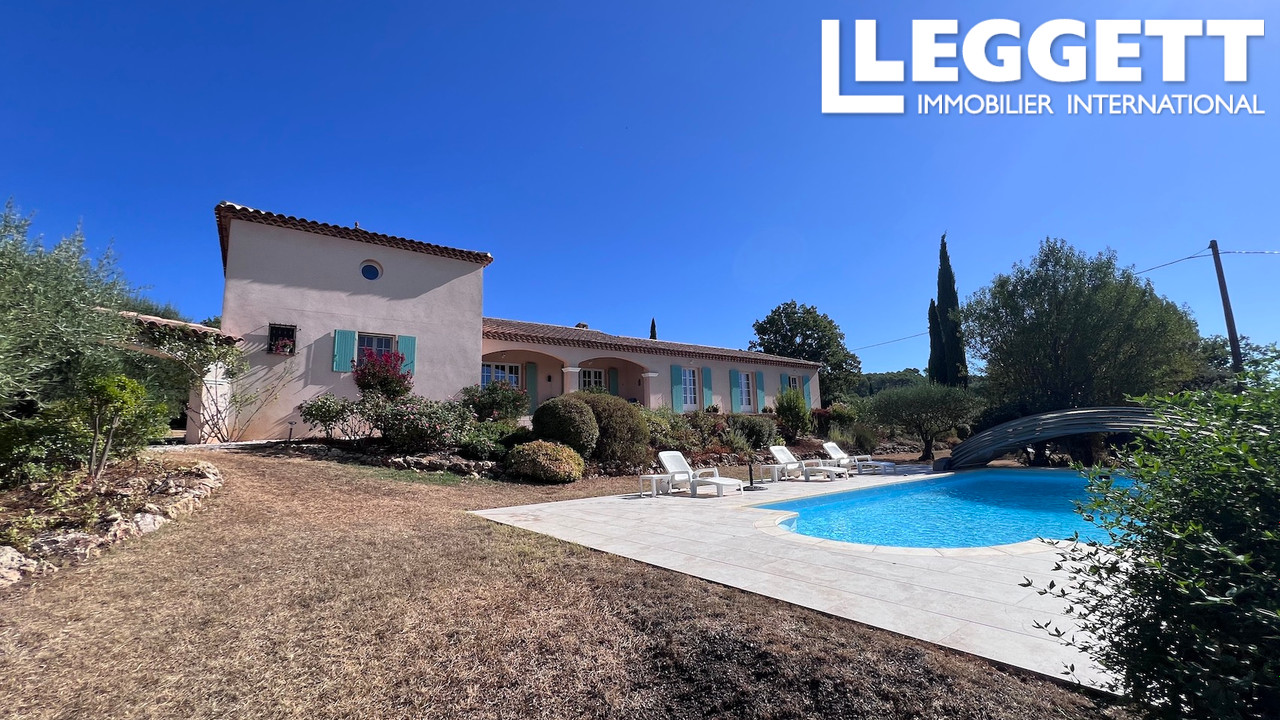 A40346GWI83 - Magnifique villa à Cotignac. Cette charmante propriété provençale, située dans un environnement calme et sans vis-à-vis, à proximité du village et de tous les commerces, repose sur un terrain de 4 240 m² agrémenté de 80 oliviers et de diverses plantes méditerranéennes. Offrant une intimité et un calme absolus, elle bénéficie d'une vue panoramique exceptionnelle sur la campagne environnante. Le jardin abrite une belle piscine. Un grand garage de 27 m² et un abri-voiture sont également disponibles. Au rez-de-chaussée : un hall d'entrée, des toilettes invités, un grand séjour-salle à manger de 45 m² avec cheminée. Cette pièce lumineuse donne accès à une terrasse ombragée, orientée plein sud, offrant une vue imprenable sur la piscine et les environs. Une cuisine spacieuse et entièrement équipée avec coin repas, un cellier/buanderie, une suite parentale avec salle de bains et toilettes, trois chambres supplémentaires, un dressing, une salle de douche et des toilettes séparées.