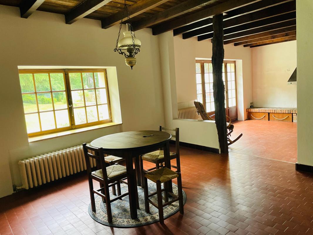 La maison principale d'environ 180m2, se compose d'une entrée et d'une cuisine indépendante de 17m2, d'un espace de vie avec cheminée, salon / salle à manger de plus de 50m2 et d'une chambre au rez de chaussée avec sa salle d'eau privative.