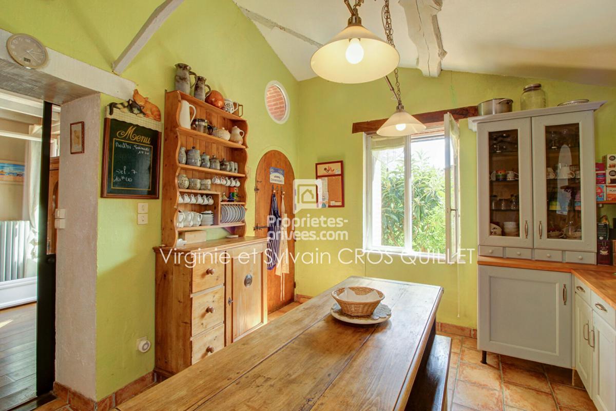 La maison annexe, de caractère, ancienne bergerie, est opérationnelle et rénovée et dispose d'un beau salon avec charpente apparente, une cuisine équipée, une Salle d'eau et une chambre lumineuse,