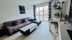 Situé au 1er étage, l'appartement se compose d'une entrée, d'un séjour lumineux, d'une cuisine aménagée et entièrement équipée, de deux chambres, d'une salle de bains, d'un cellier, d'un WC séparé et d'un agréable balcon.
