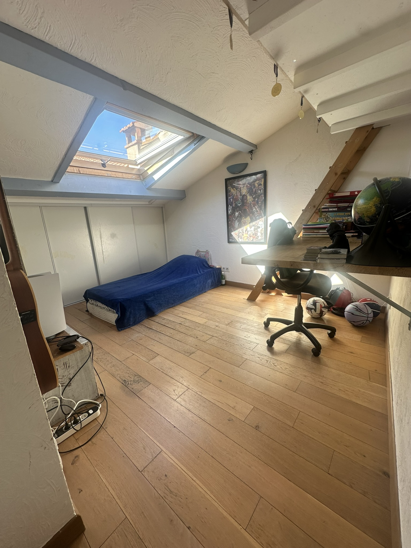 Aux étages supérieures, vous y trouverez dans un premier temps une chambre avec placard, une salle de bains avec double vasque et un espace bureau qui vous mènera au dernier étage pour y trouver 2 belles chambres avec velux, dont une avec mezzanine.