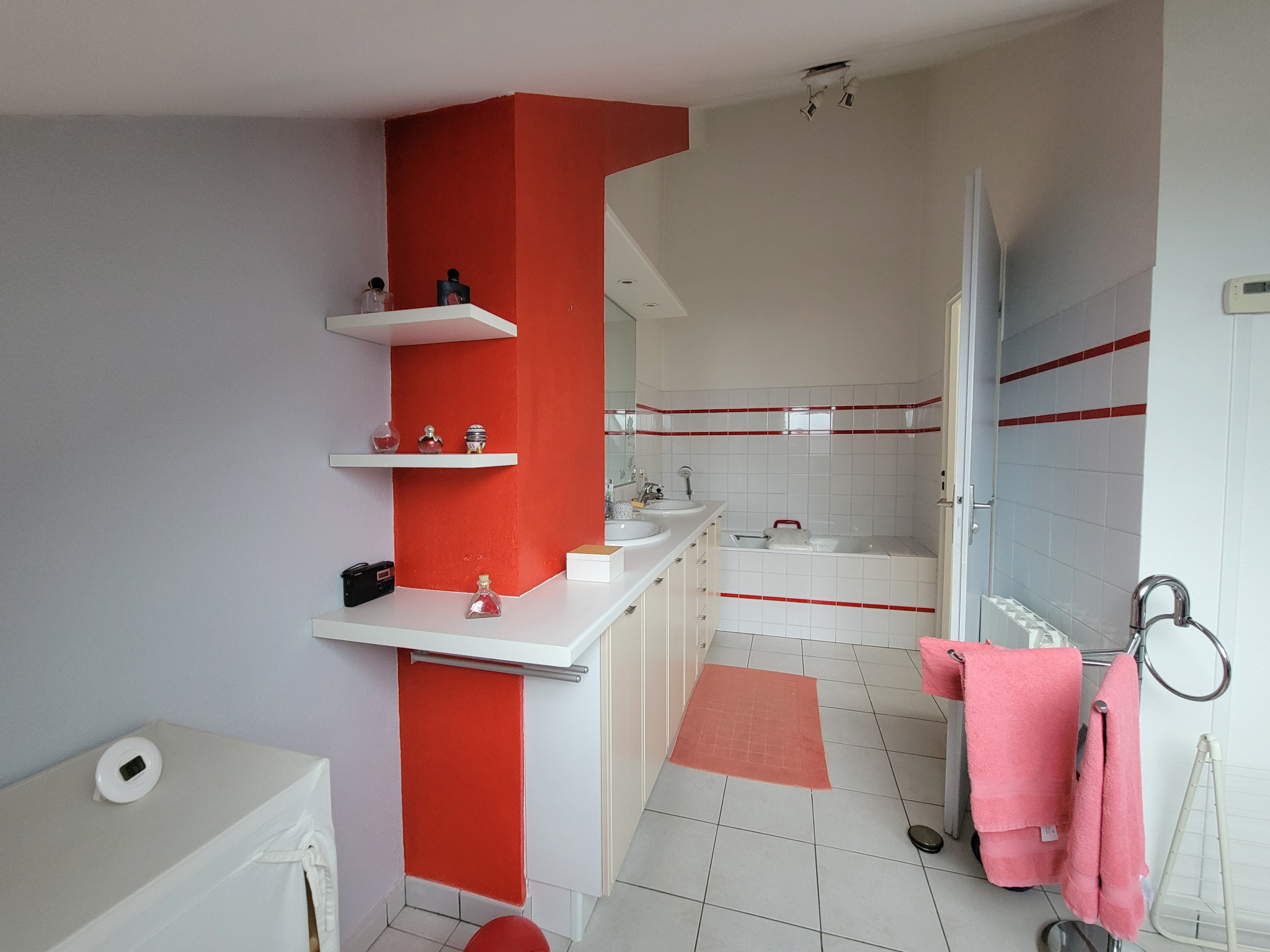 Il est composé d'une entrée avec placard, un salon séjour d'environ 40 m2 avec terrasse de 15 m2 et balcon de 8 m2, une cuisine toute équipée et aménagée, une chambre avec placard, un bureau, une salle de bains et un wc. A l'étage, une mezzanine avec rangements, deux grandes chambres, une salle de bains, une buanderie et un wc.