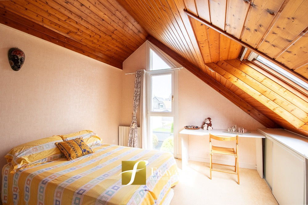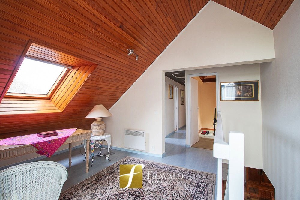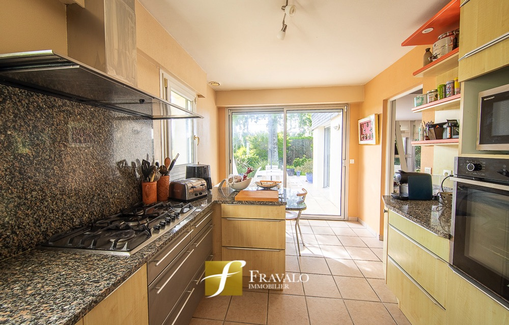 A Vannes, proche de la clinique Océane, dans un environnement calme et verdoyant, à proximité des sentiers et à 10 minutes du centre ville, belle maison lumineuse sur un terrain arboré de 1200 m2. Le rez-de-chaussée se compose d'une entrée, d'une belle pièce de vie, d'une cuisine aménagée-équipée avec buanderie, d'une cave et d'un grand garage de 80 m2. Une chambre avec salle de d'eau et wc attenant complètent le rez-de-chaussée. A l'étage, vous retrouverez une mezzanine, trois chambres, une salle de bains et un wc. Ses plus: le calme de la campagne avec un grand terrain tout en étant à moins de 15 minutes de toutes les commodités (gare, commerces, écoles...) Estimation des coûts annuels d'énergie pour un usage standard du logement: entre 1560 EUR et 2160 EUR (abonnement compris). Les informations sur les risques auxquels ce bien est exposé sont disponibles sur le site Géorisques : georisques.gouv.fr