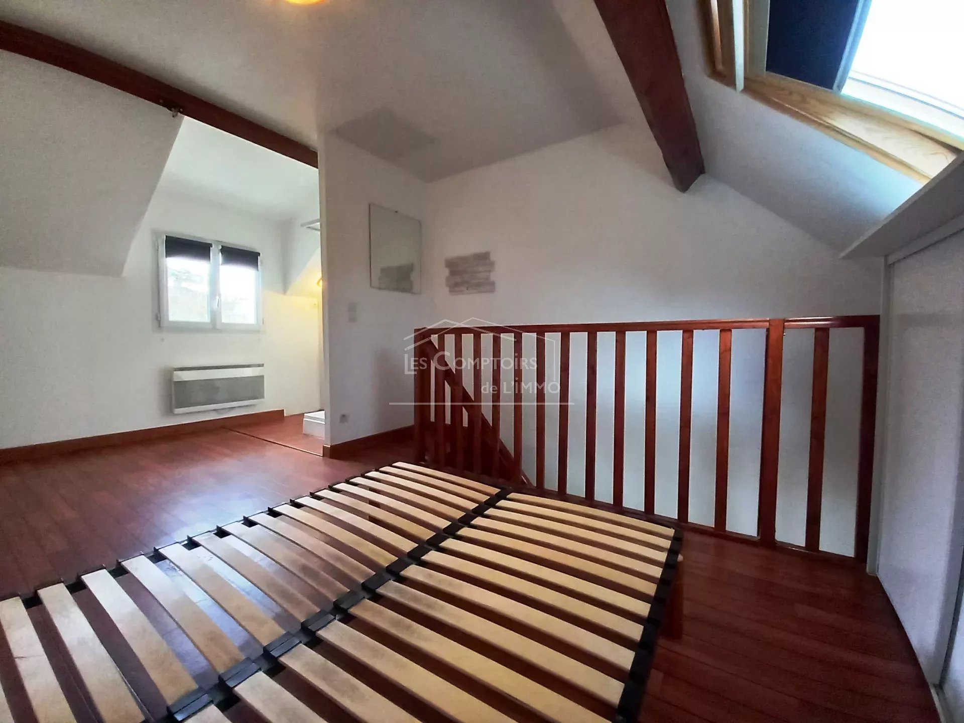 St Nazaire, quartier Guindreff,Un appartement/Maison situé au RDC et combles, composé d'un séjour avec Kitchenette (plaque, hotte, four), WC, escalier privatif donnant accès à une chambre avec douche, lavabo.