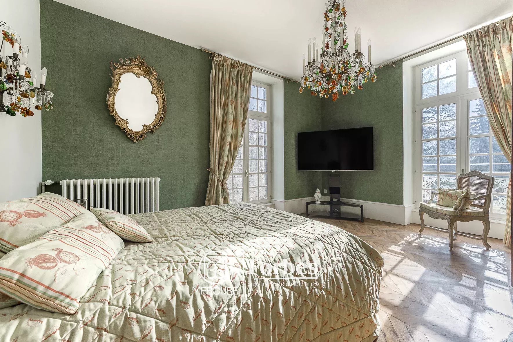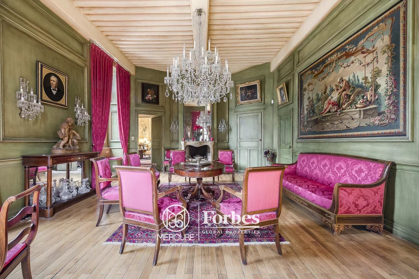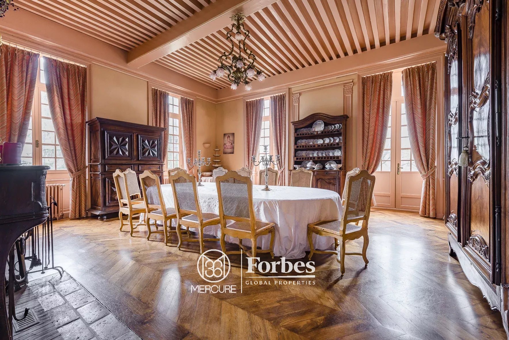Ensemble du XVIIIème siècle s'étendant sur plus de trois hectares, comprenant un château d'environ 500 m² habitables, d'importantes dépendances, un parc, une piscine, un étang et un parking avec accès indépendant. La rénovation, marquée par une décoration chaleureuse en harmonie avec l'histoire du lieu, a préservé de nombreux éléments architecturaux.