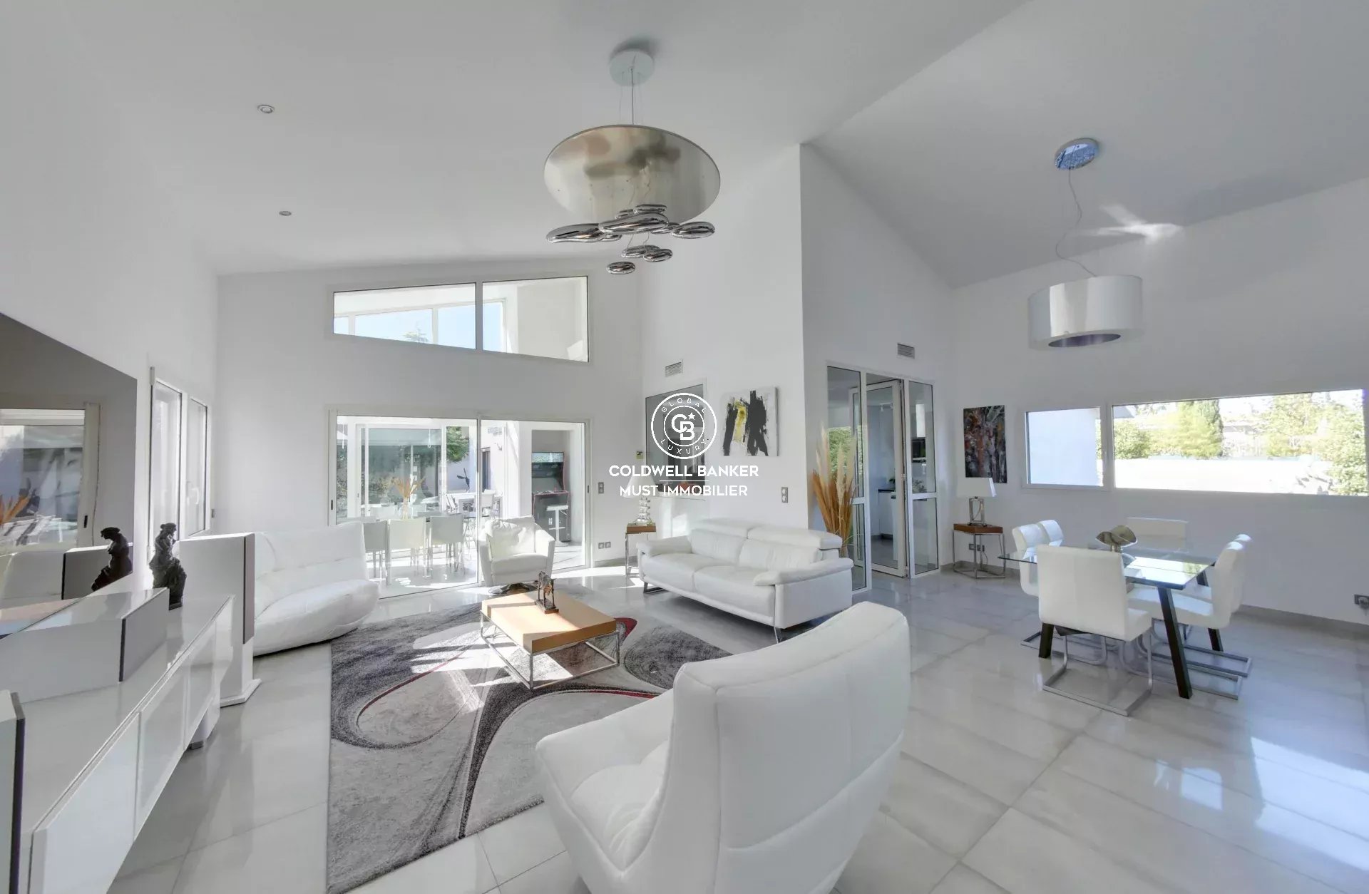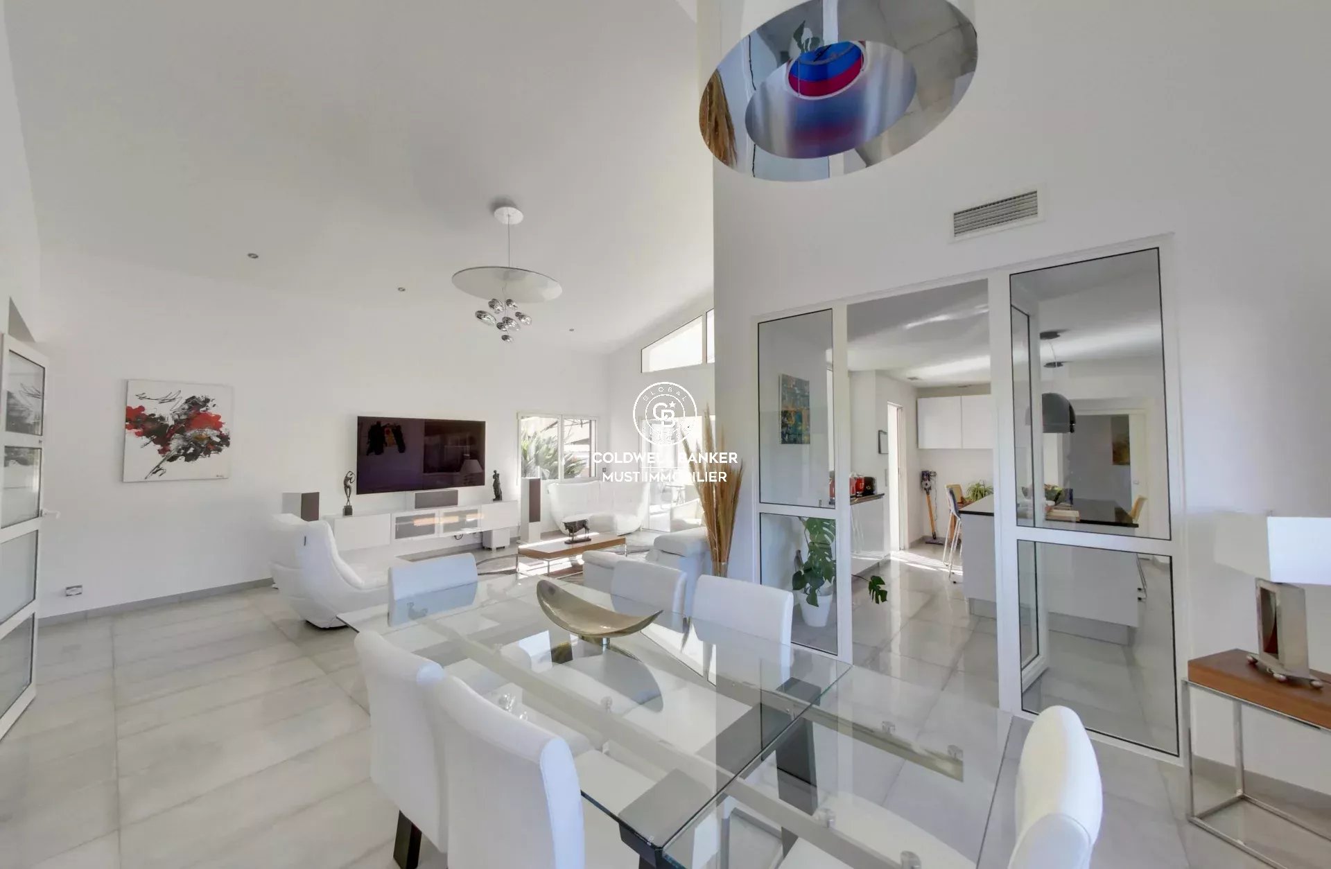 Dans un cadre privilégié, cette villa d'architecte de plain-pied est nichée au cœur d’une parcelle arborée de plus de 1 500 m². Son vaste hall d’entrée ouvre sur un salon-séjour lumineux de 50 m² prolongé par une salle à manger, ainsi qu’une cuisine aménagée et équipée de 18 m² avec cellier. La terrasse invite à profiter de l’extérieur et du calme de l’environnement.