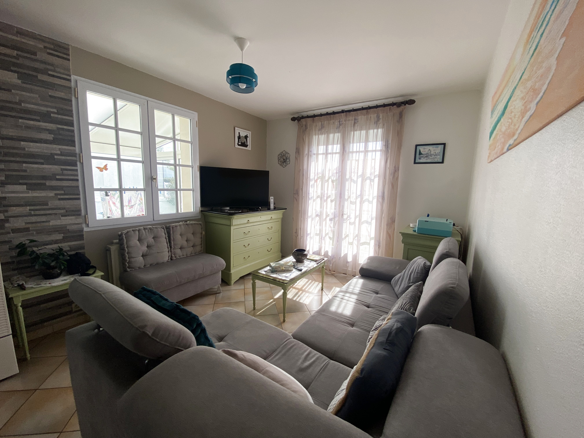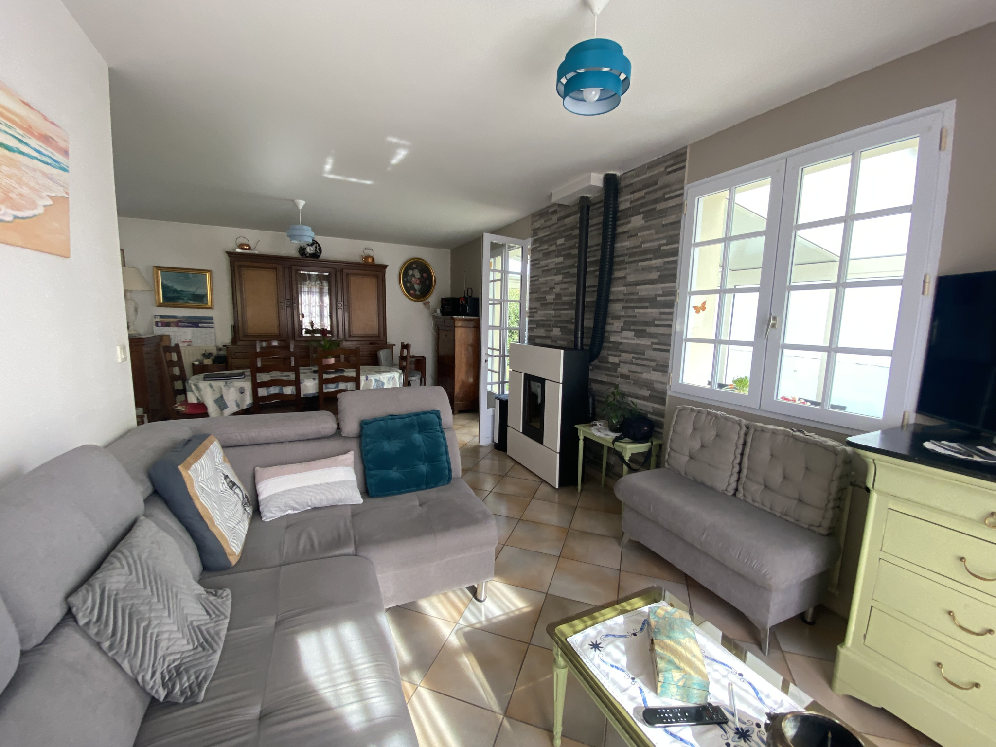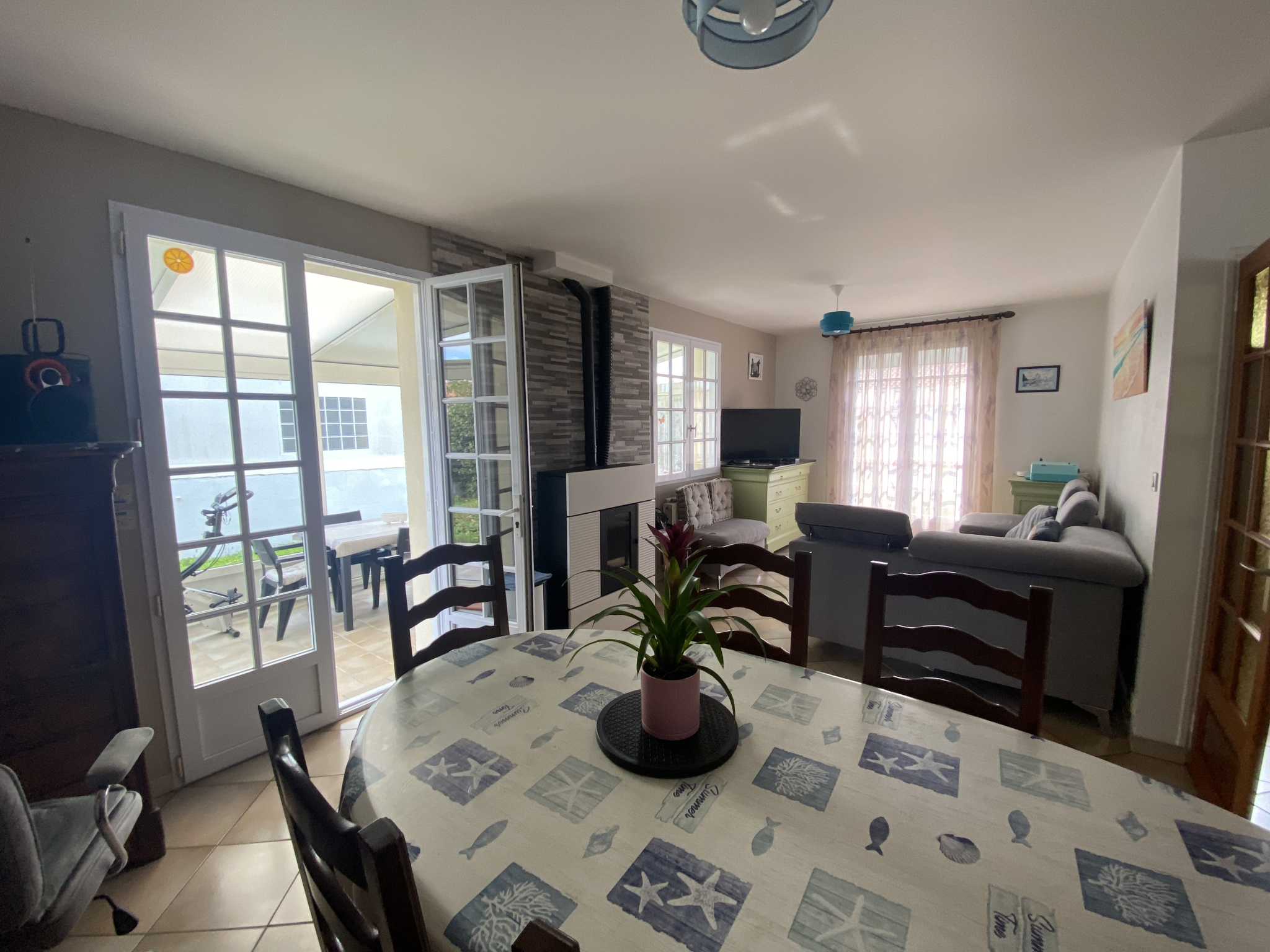 Située 850 mètres du centre-ville et à 1.5 km des plages. Maison de plain-pied non mitoyenne d'une superficie d'environ 93 m2 Elle se compose d'une entrée avec placards desservant le salon séjour avec poêle à pellets orientée Sud-Ouest, cuisine ouverte, aménagée et équipée, le tout ouvrant sur une belle véranda de 14m2 sous garantie décennale. La partie nuit se compose de deux chambres, une salle d'eau, wc séparé avec lave mains.Un grand garage d'environ 40m2 complète ce pavillon.
