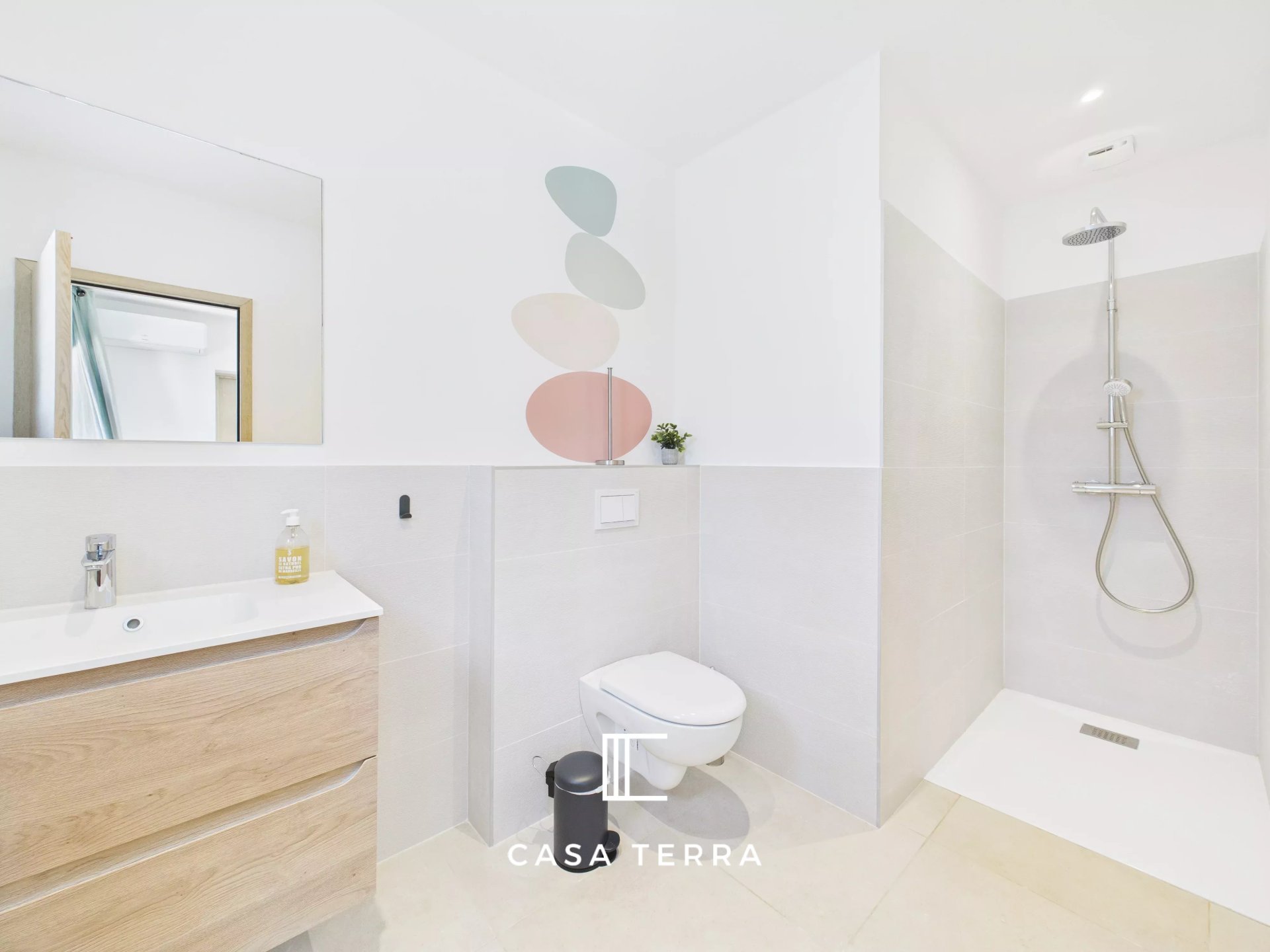 - un large espace de vie composé d'un salon-séjour, d'une cuisine semi ouverte aménagée et équipée, d'un cellier et d'un toilette indépendant, ce niveau propose deux large terrasses pour un total de 69 m² avec salon extérieur,