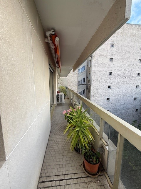 Entrée desservant la cuisine, des toilettes séparées puis le salon qui donne sur un grand balcon sans vis à vis. Chambre, salle d'eau et dressing. L'appartement est en très bon état et climatisé. Cave en sous-sol.