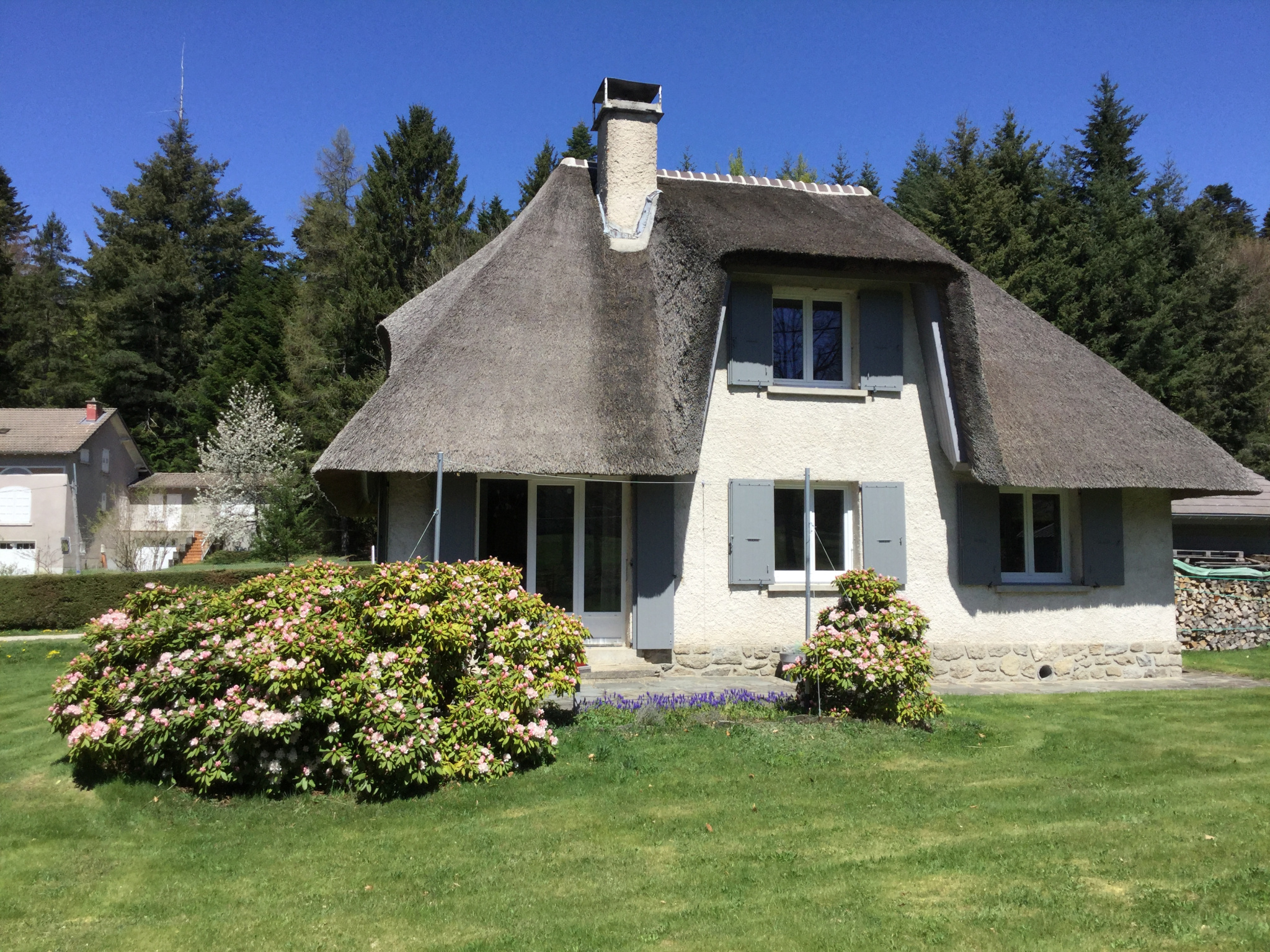 Le Chambon sur Lignon maison entièrement rénovée et isolée. RDC : Salon Plain-pied 36 m2 ouvert sur le jardin, et, sur une cuisine de 8 m2 aménagée sur mesure. Petite salle d'eau/WC, entrée et dégagement, 1ère chambre de 13.75 m2, 2ème chambre de 10.50m2, petit bureau. Etage : 3ème chambre de 14.80 m2, 4ème chambre 15 m2 (dont une douche), 5ème chambre 12.26 m2, salle de bains/WC 11m2. 1er Garage de 50 m2 accessible, 2ème garage indépendant en bois. Sous-sol : buanderie/chaufferie 18 m2, cave 32 m2 environ. Eau de réseau et puits sur le terrain, tout à l'égout, chauffage central fioul et poêle à Granules/bûches de 2015. Double vitrage et volets en fibre de verre (isolés), VMC. Maison en moellons de 33 d'épaisseur, plus laine de roche et laine de bois. , divers . Couverture en chaume 2010 isolée avec 30cm de laine de verre sous le chaume, celui-ci est lui-même un isolant, résistant à la pluie, la grêle et les intempéries en général, une toiture en chaume est aussi performante qu'une toiture en tuile. Maison atypique avec beaucoup de charme. Contact Pascale Blanc agent commercial immobilier 07 50 06 00 50, pascale.blanc043@orange.fr, www.maurin-immobilier.com