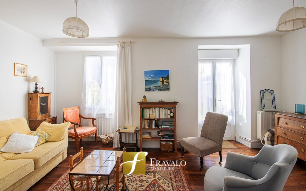 Idéalement située au coeur du centre d'Arradon, charmante maison de bourg avec jardinet, à rénover, de 80 m2 environ sur 3 niveaux. Le rez-de-chaussée comprend une entrée, un salon, une salle à manger, une cuisine, une salle d'eau et un wc. Au 1er étage, le palier dessert quatre chambres et un wc. Le deuxième étage dispose d'un grenier aménageable. Ce bien est implanté sur un terrain de 100 m2. Estimation des coûts annuels d'énergie pour un usage standard du logement: entre 2200 EUR et 3010 EUR (abonnement compris). Les informations sur les risques auxquels ce bien est exposé sont disponibles sur le site Géorisques : georisques.gouv.fr