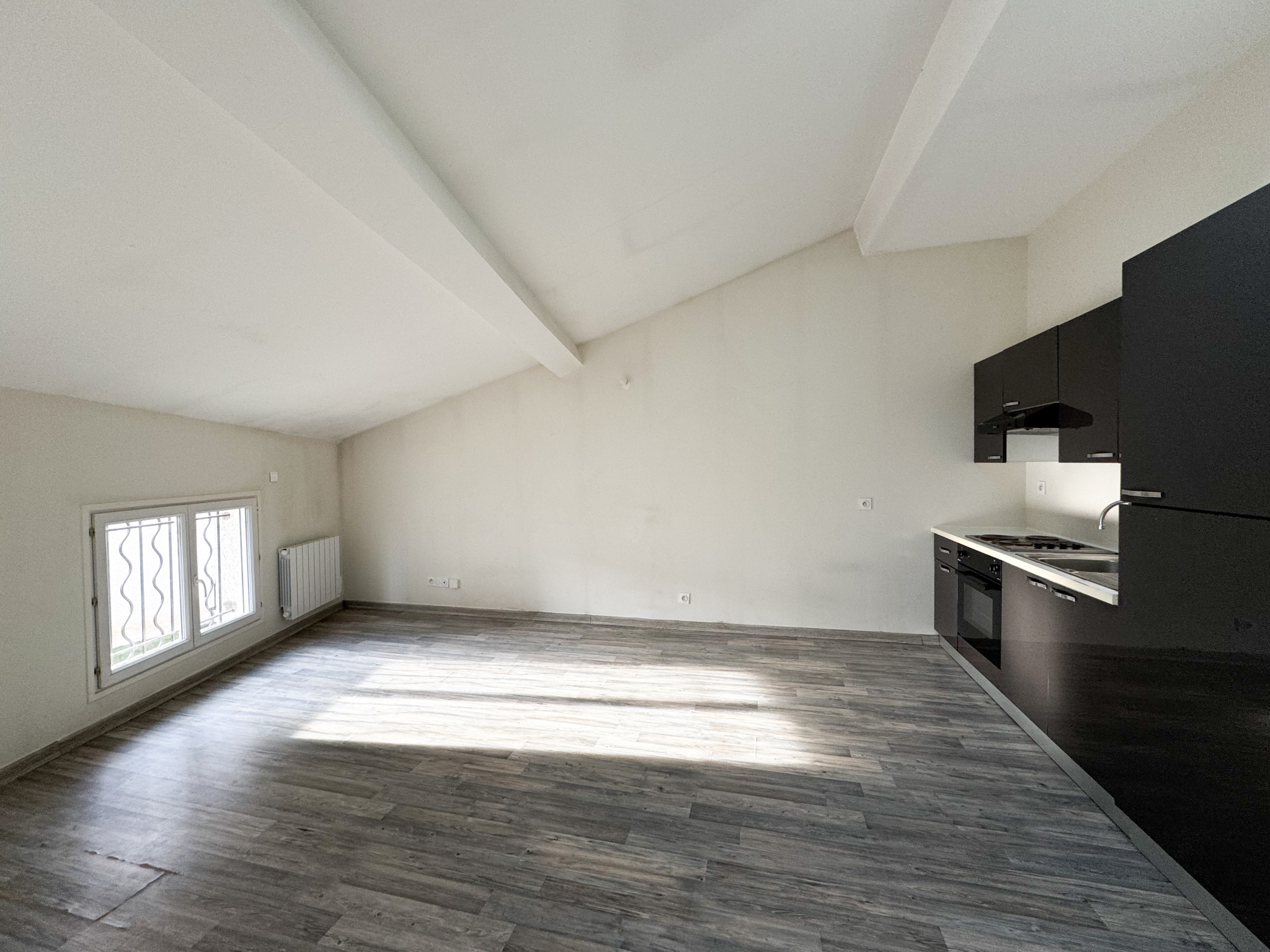 À l'étage, la pièce de vie de 31,6 m2 est baignée de lumière et comprend une cuisine équipée (plaque électrique, hotte et réfrigérateur). L'espace nuit se compose de deux chambres de 10,42 m2 et 12,96 m2, offrant la possibilité d'intégrer des rangements muraux pour optimiser l'espace. Une salle de bains fonctionnelle de 5,2 m2, équipée d'une baignoire, d'un sèche-serviettes et d'une simple vasque, vient parfaire cet agencement.