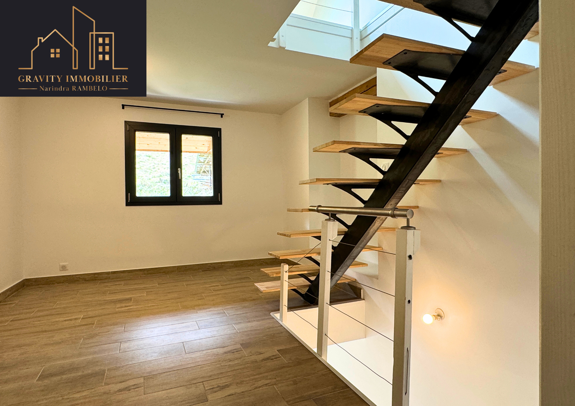 Dans une ancienne bâtisse de caractère entièrement rénovée avec des prestations de qualité, découvrez ce bel appartement T2 en triplex d'environ 47.3 m2 en loi carrez, niché au coeur de la campagne, au calme et proche d'un ruisseau.