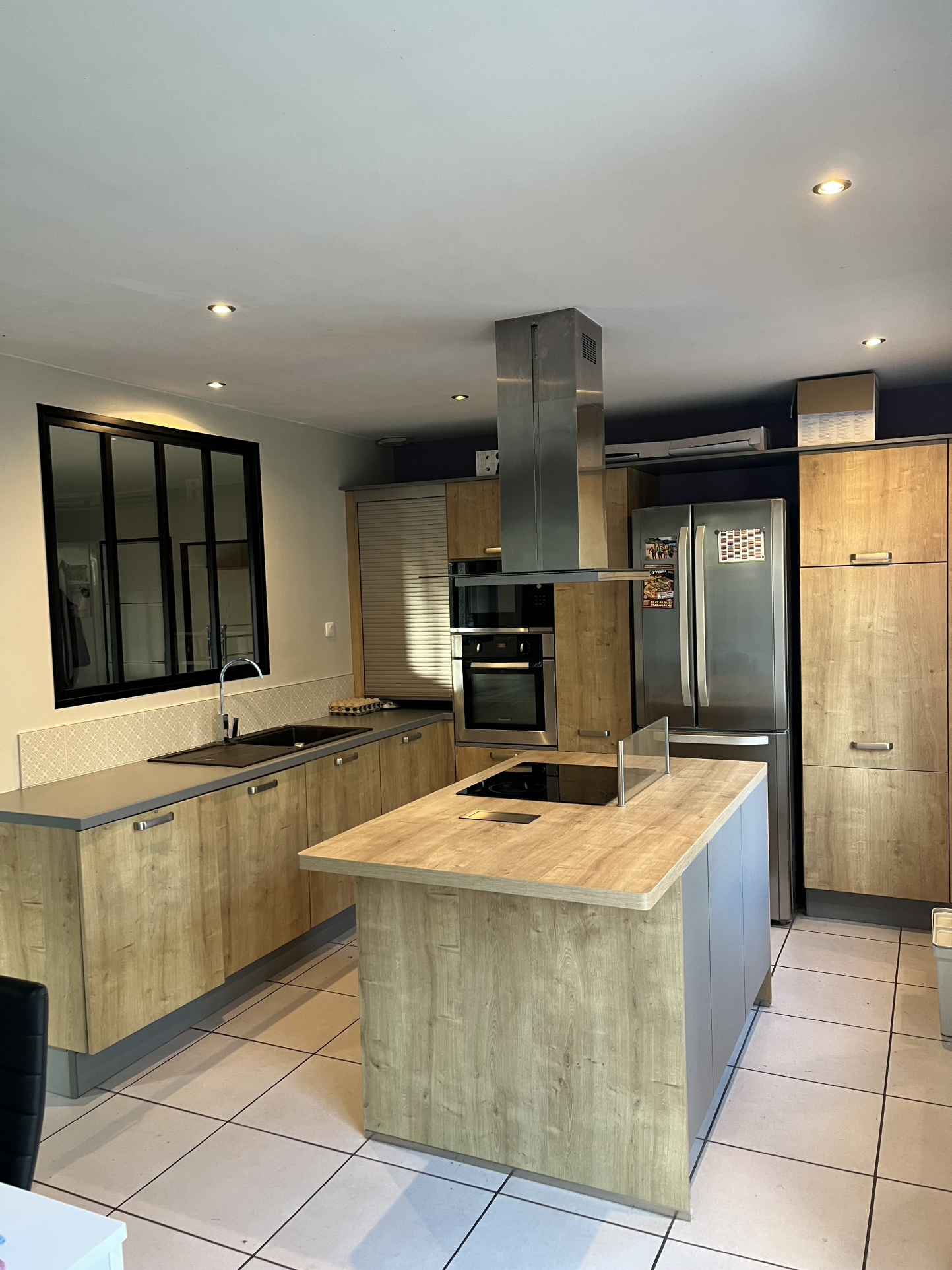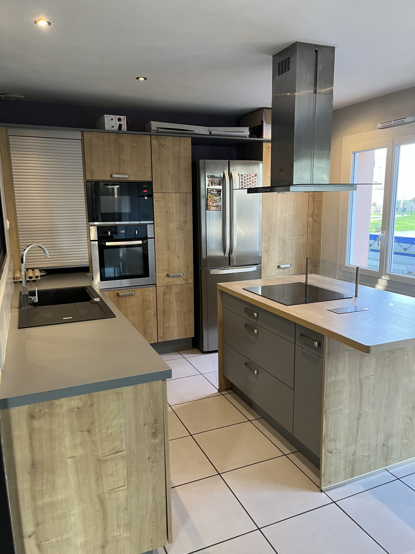 Maison à VILLEDIEU-LA-BLOUERE Maison d'habitation de type 4 de plain-pied comprenant : entrée, pièce de vie de 50m2 avec cuisine ouverte aménagée et équipée, 2 chambres (3 possibles) dont une avec dressing, salle de bains, wc. Garage avec grenier et coin laverie. Poêle à bois et chauffage électrique dans les chambres. Fenêtres en PVC double vitrage et baies en aluminium. Terrain de 1700m2 .