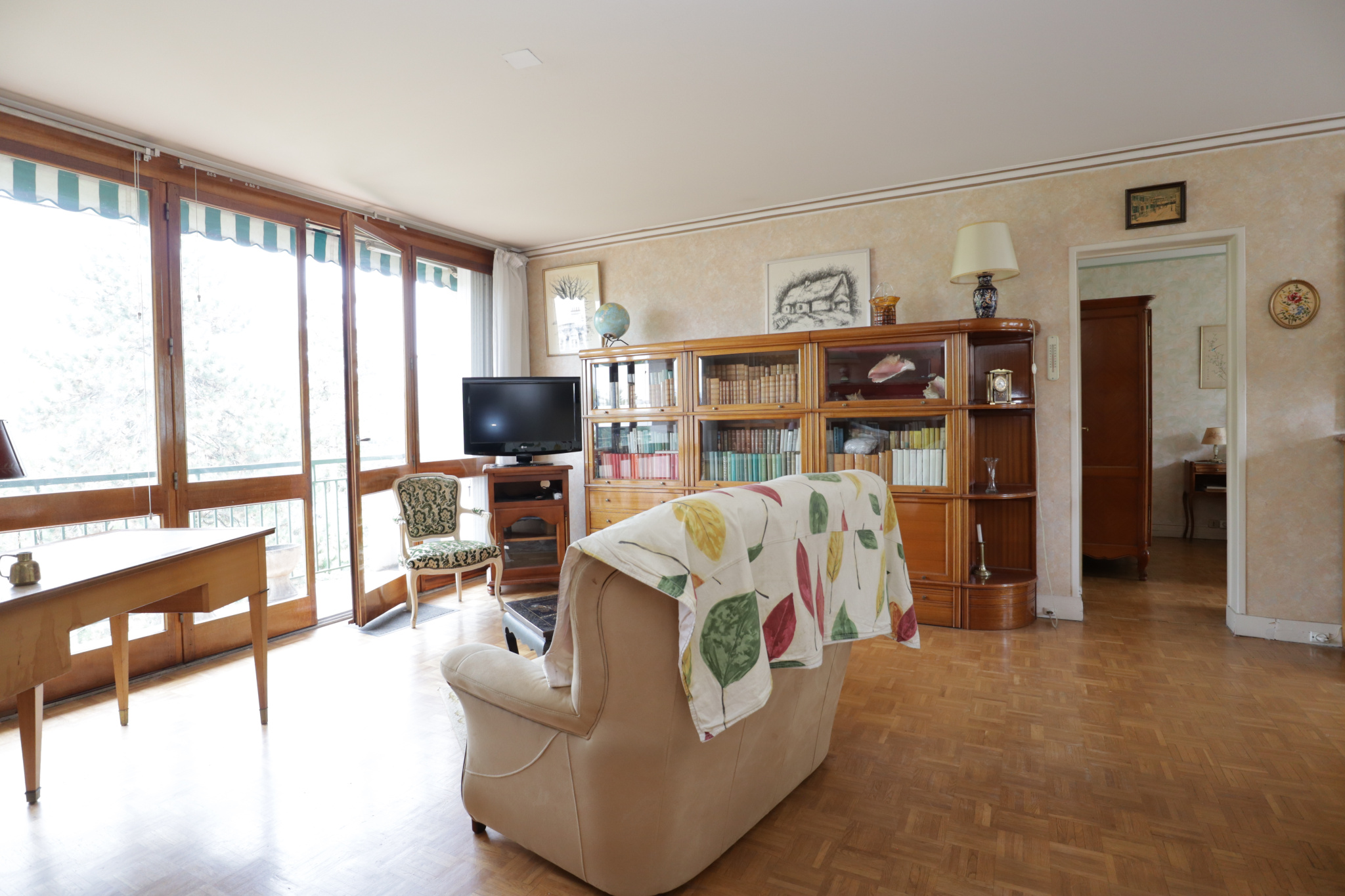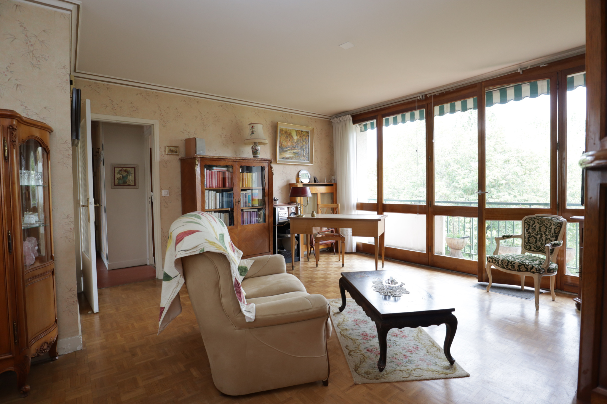 Résidence des années 60, secteur 'Les Boutareines', à proximité immédiate des commerces, écoles et bus, et à seulement 14' du RER. Cet appartement familial et lumineux de 4 pièces d'une surface habitable de 75.48 m2, situé en étage élevé, offre de nombreux atouts : copropriété sécurisée avec parc arboré, séjour double de 30.85 m2 (avec possibilité de créer une troisième chambre), grand balcon de 7.65 m2 avec vue dégagée sur la verdure, cuisine dînatoire avec cellier, rangements intégrés. Il comprend : une entrée avec placards, une grande pièce de vie, une cuisine avec cellier, deux chambres, une salle de bains et un wc. Une cave et un stationnement extérieur libre complètent ce bien. Travaux à prévoir.