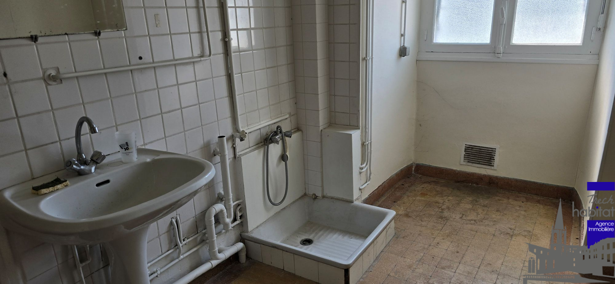 Appartement de type T3, à rénover, situé au 1er étage d'un immeuble en copropriété. Entrée sur séjour avec balcon et vue dégagée, cuisine, 2 chambres avec placard, salle d'eau, wc séparé. Grenier, cave, et 1 stationnement dans le parking couvert. 68 m2 habitable, appartement traversant, lumineux, situé à proximité immédiate des lycées, de l'hôpital et du centre-ville. Soumis au statut de la copropriété, charges annuelles de copropriété d'un montant de 810EUR comprenant les charges communes générales et l'eau froide. Immeuble régulièrement entretenu.