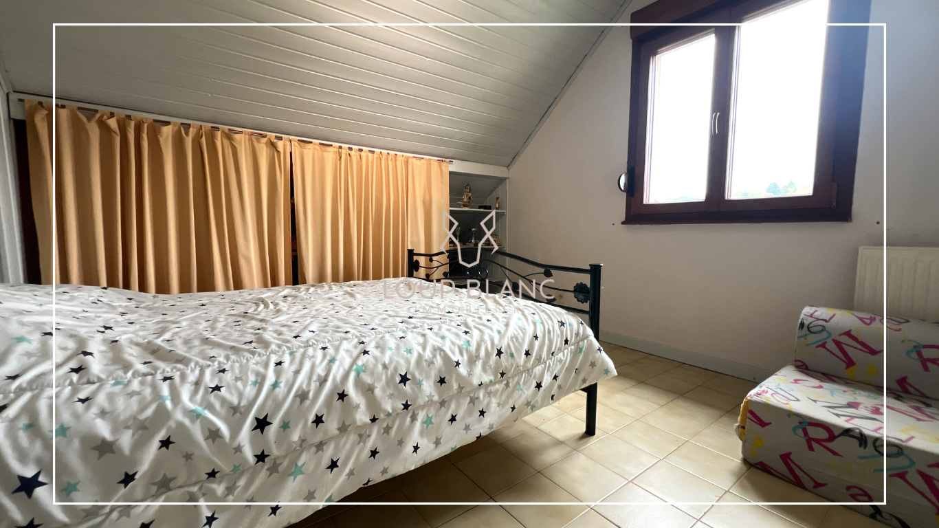 À l'étage : Quatre chambres,une mezzanine pouvant servir de bureau ou d'espace détente,une salle de bains avec WC.