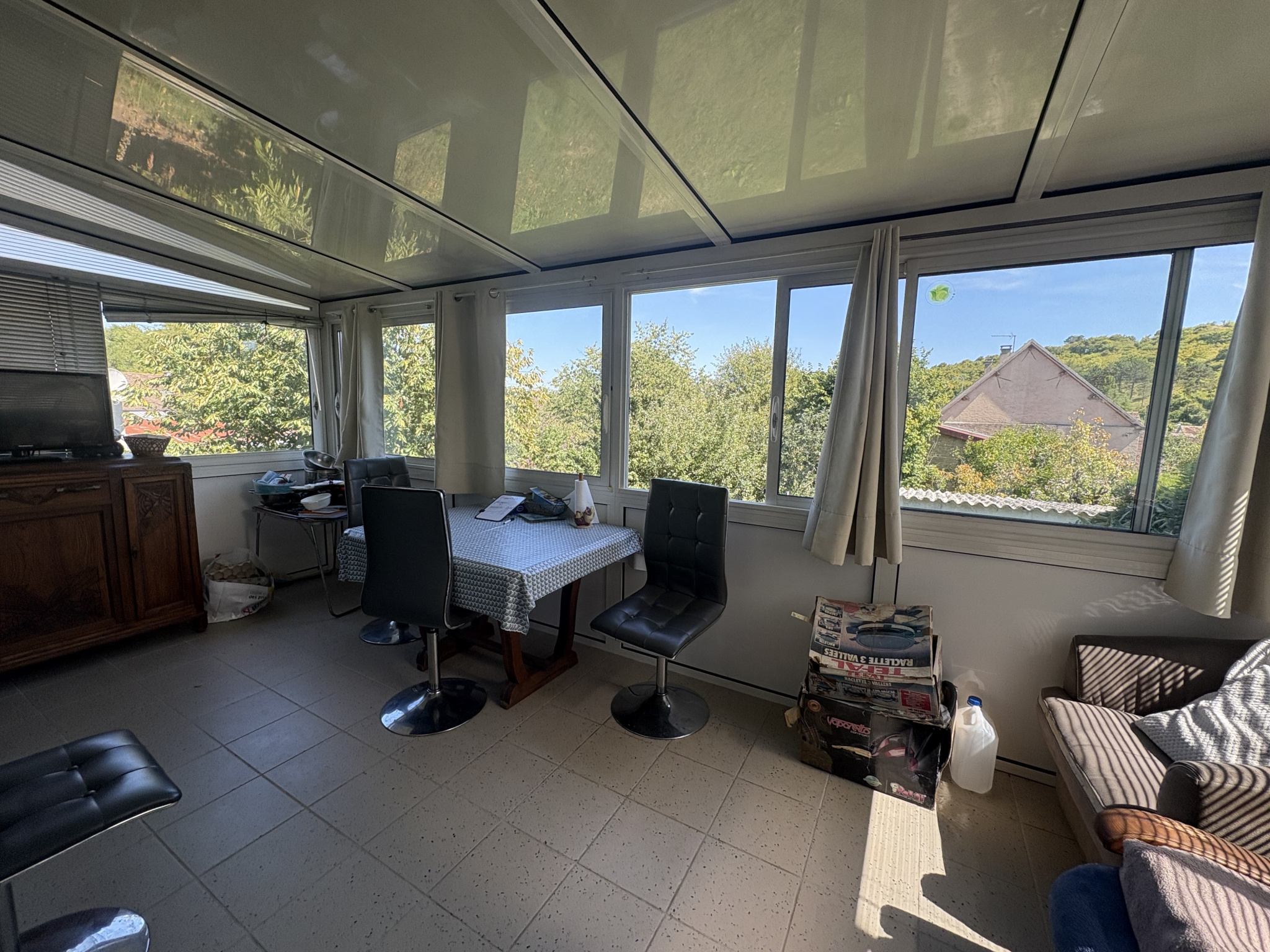 Il est composé d'une entrée, d'un salon/séjour avec insert bois, une cuisine séparé, une véranda, 3 chambres, une salle d'eau et un WC.