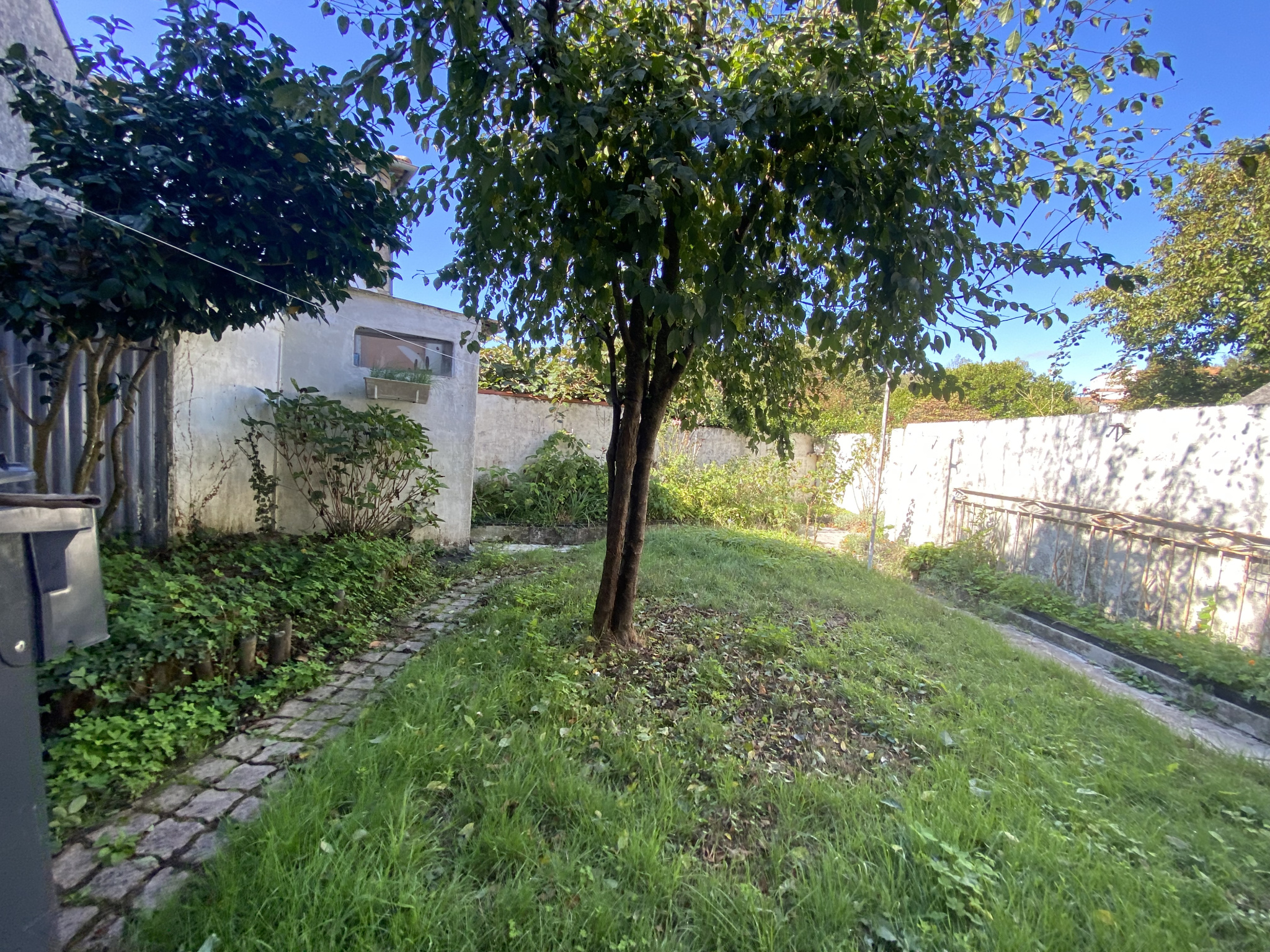 Sur l'arrière, Un joli jardin entouré de murs.