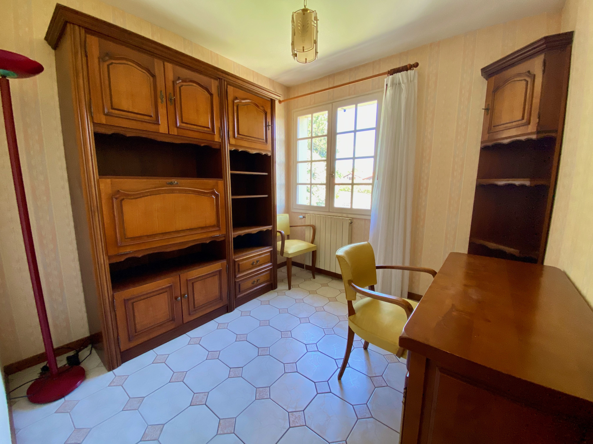 A l'étage, une pièce d'accueil pouvant servir de bureau ou de chambre d'appoint, un cabinet de toilette avec wc, une grande chambre avec placards et grenier.