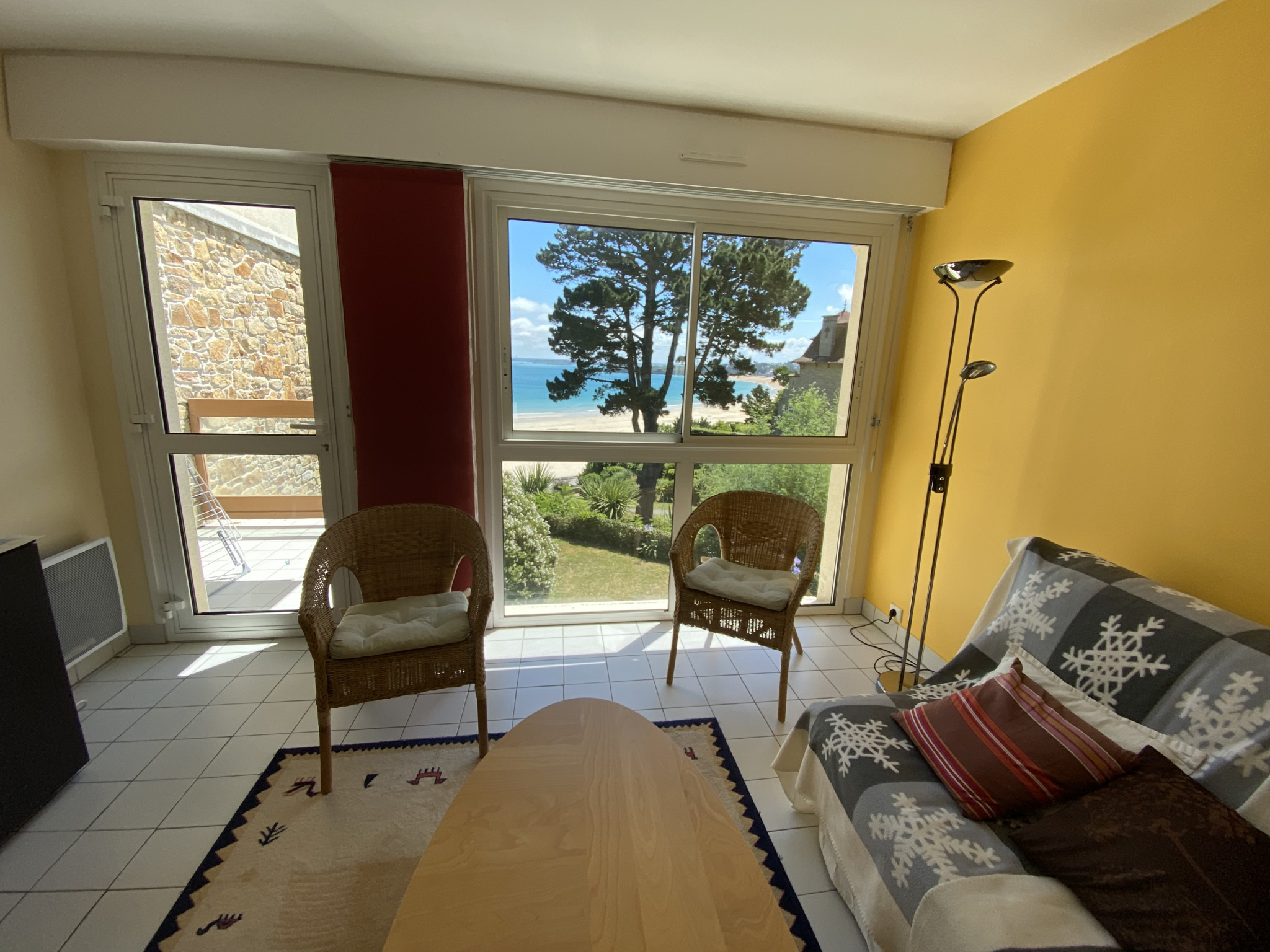AIS SAINT CAST vous propose, SAINT CAST LE GUILDO, A 2 mn à pied des commerces et de la grande plage, dans la résidence LE PANORAMA copropriété dans un écrin de verdure au rez de chaussée superbe appartement de type 3 de 61 m2 environ composé d'une entrée avec placard, chambre avec vue mer et accès balcon, salle de bain, wc, pièce de vie avec cuisine aménagée et accès balcon vue mer, une chambre. Place de parking et cave complétent ce bien.