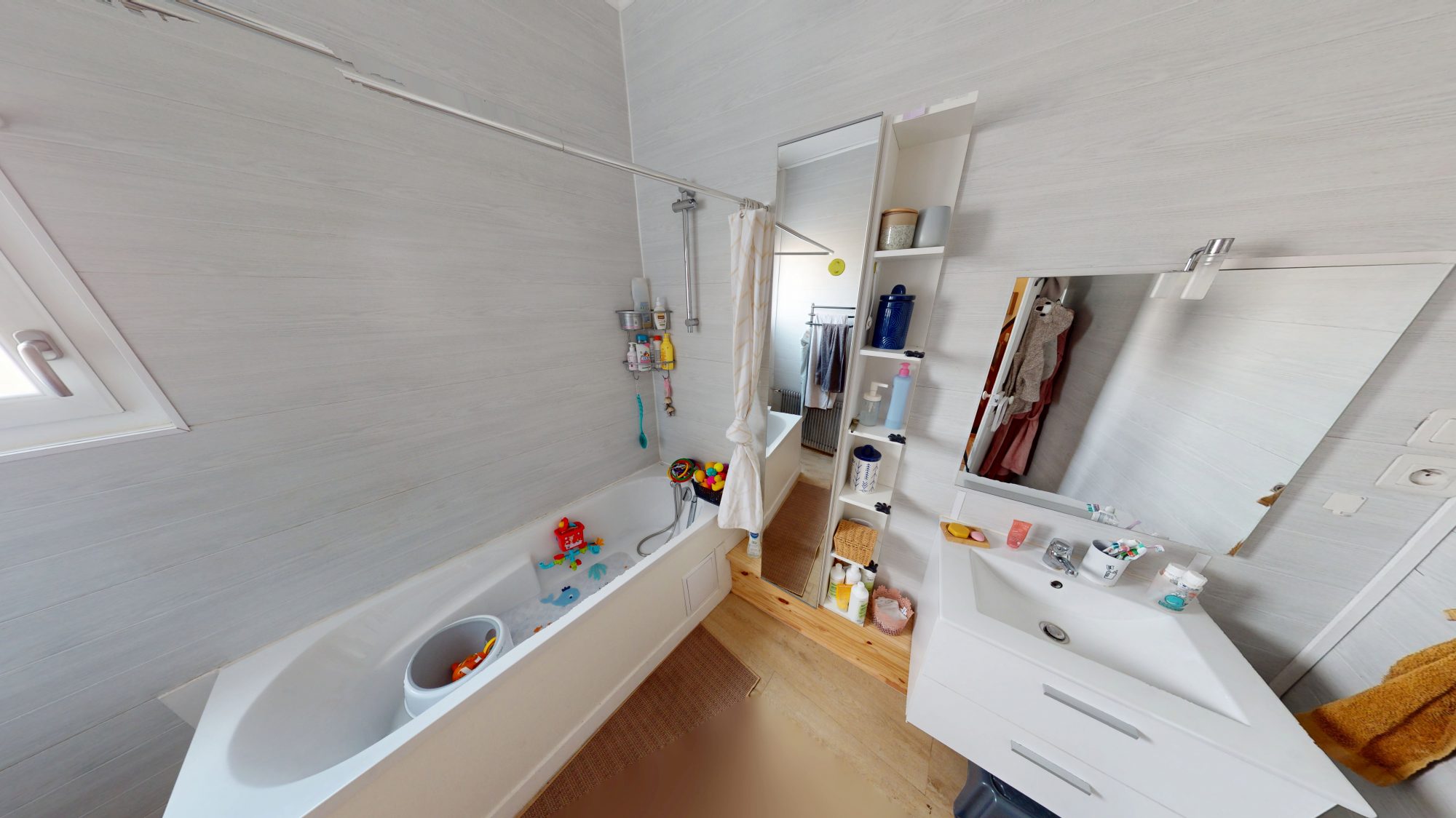 Au 1er étage : palier desservant une chambre et une salle de bain lumineuse