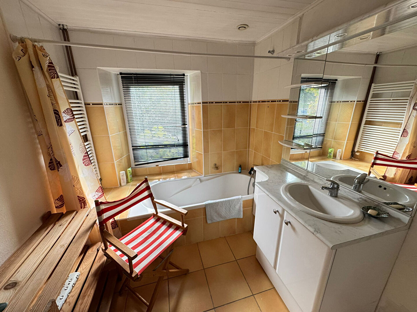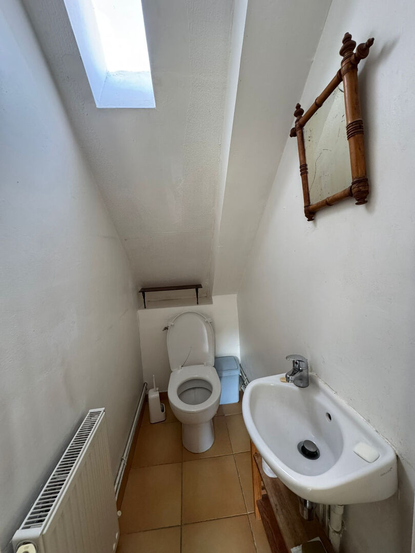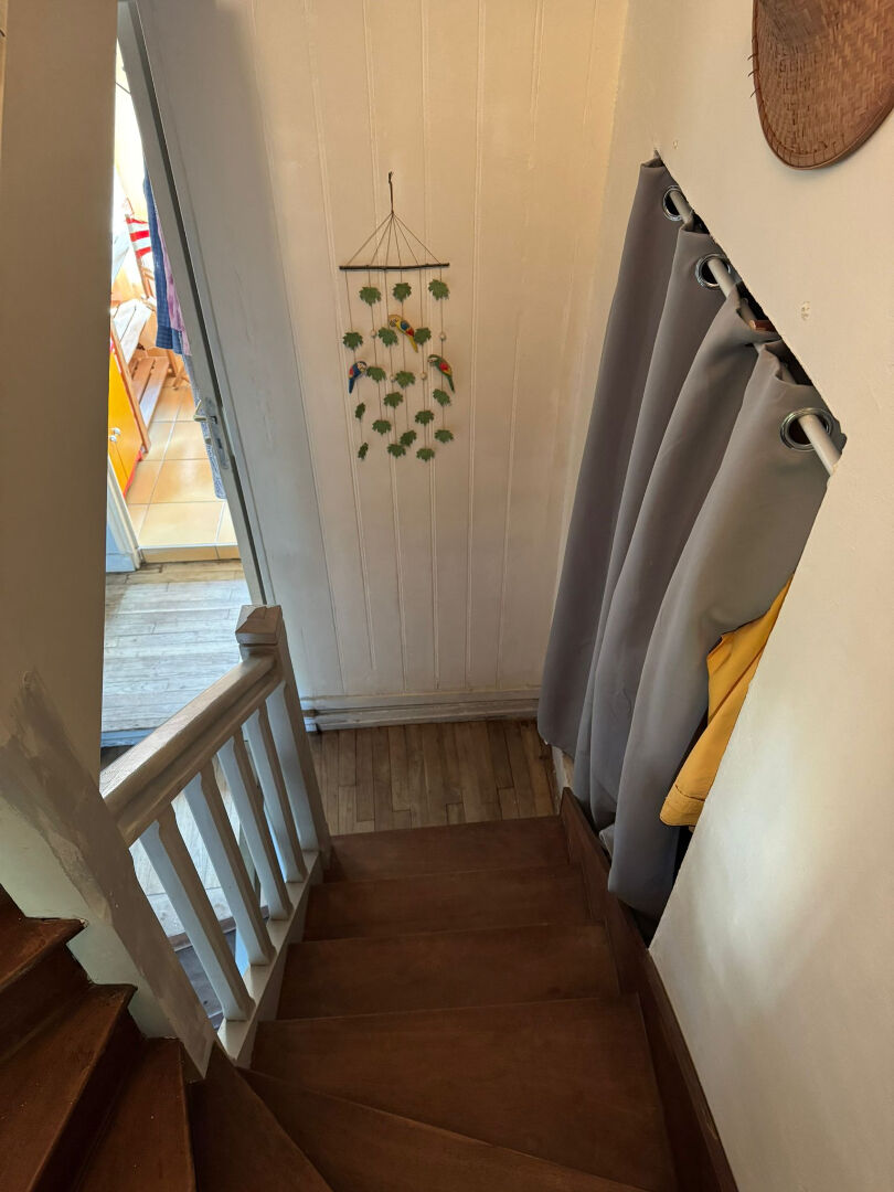 - 1er étage : deux chambres, une salle de bain et des toilettes.