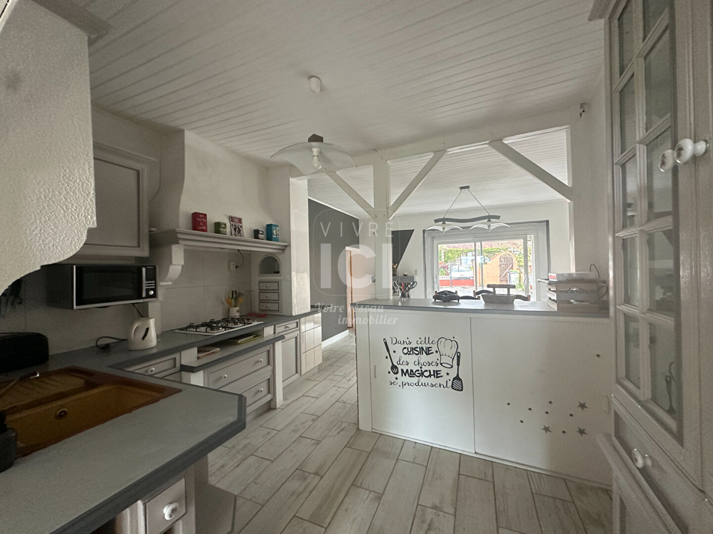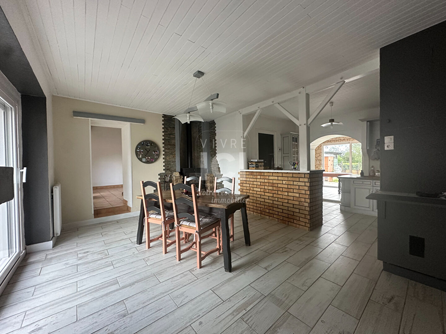 Dans un environnement privilégié en campagne, à 5 kms de la Bernerie en retz et des plages, maison de plain pied offrant une agréable pièce de vie lumineuse avec une cuisine aménagée et un poêle à bois, un salon avec mezzanine pouvant servir de bureau, 3 chambres, une salle d'eau, une buanderie. Attenant une cuisine d'été et un préau.