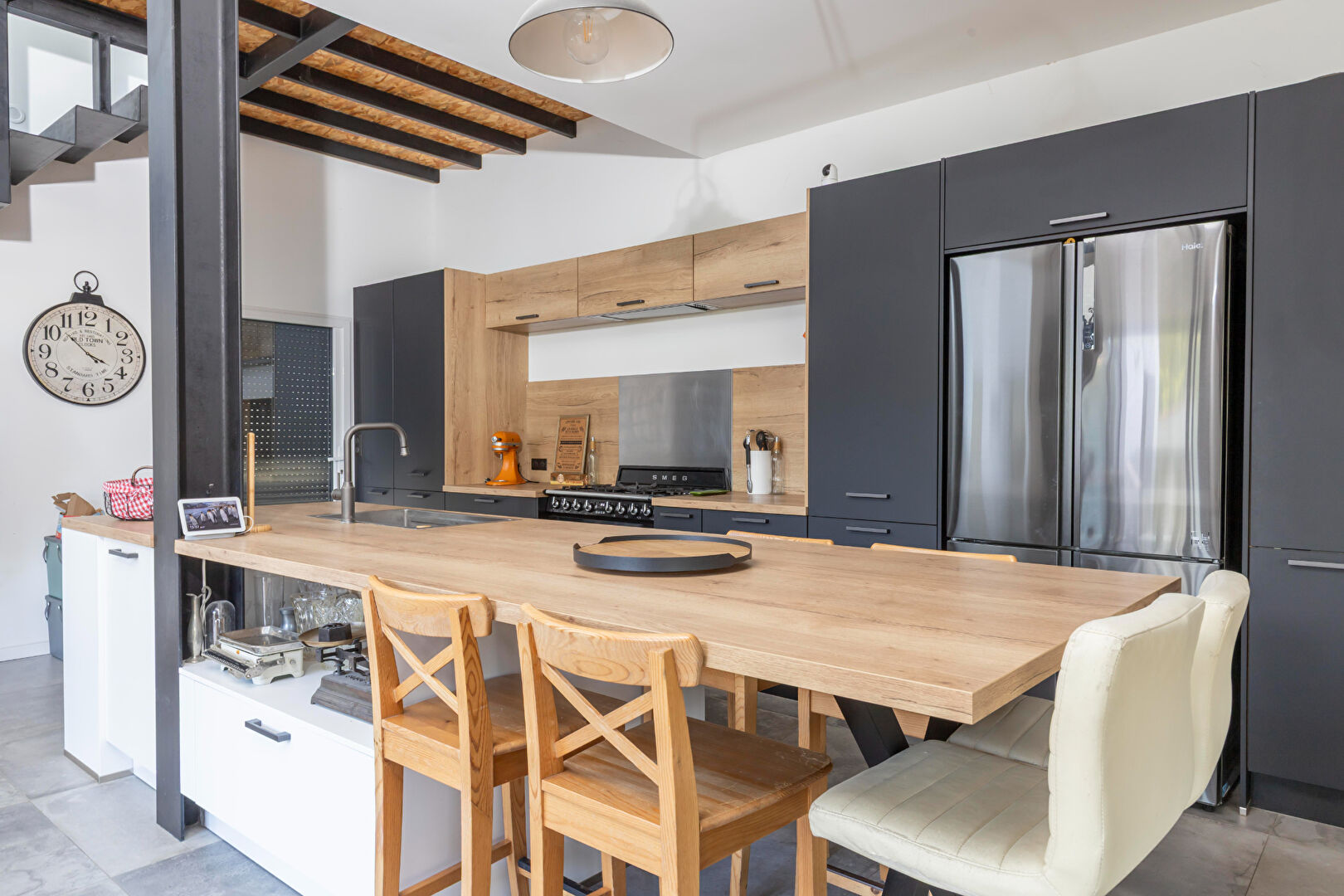 une pièce de vie de 100m2 dominée par une entrée cathédrale , son espace parental et ses dépendances, son espace enfants avec 3 belles chambres , salle de jeux et salle cinéma