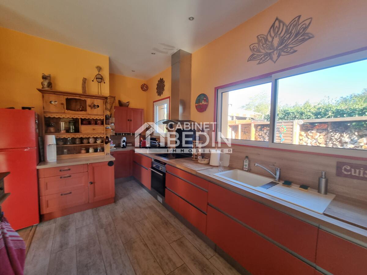 Cette propriété entièrement de plain pied, située au c?ur de la commune, offre dès son entrée un espace de vie lumineux et spacieux avec sa cuisine ouverte sur le séjour-salon, 3 chambres, une chambre parentale avec sa salle d'eau et WC et sa terrasse privée équipée d'un store banne, une salle d'eau et WC indépendant. Une grande terrasse couverte pour y accueillir famille et amis .