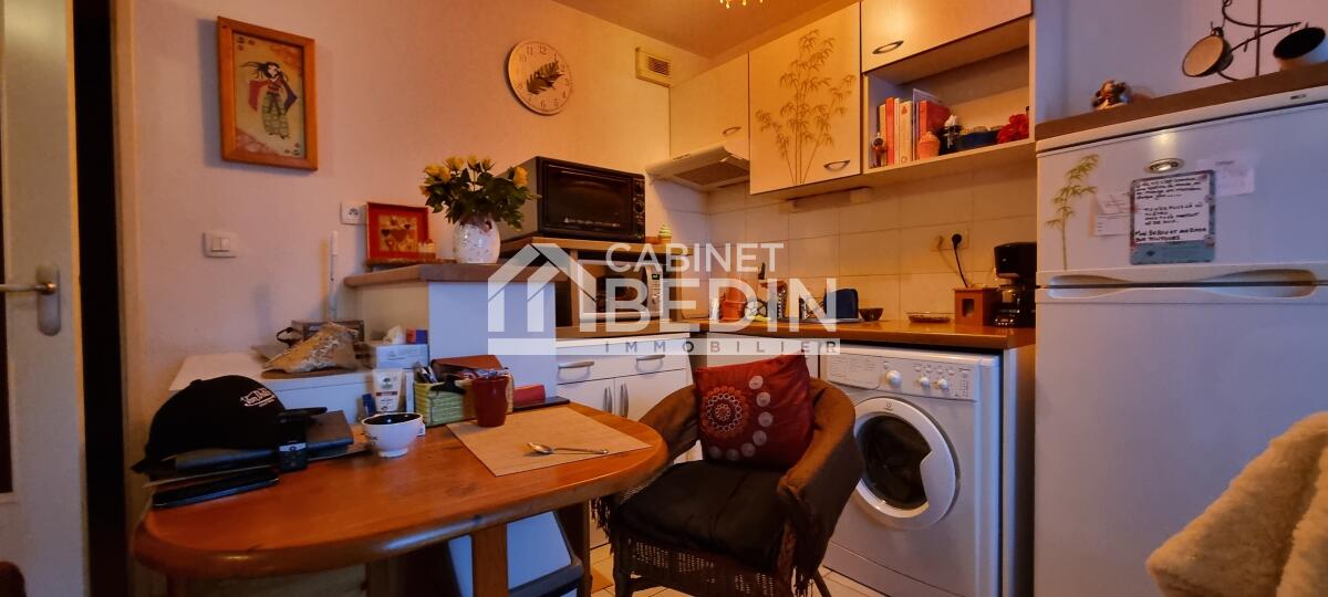 Exclusivité CABINET BEDIN - Vente Appartement T1 Castillon La Bataille. En rez de jardin d'une résidence sécurisée et calme, appartement T1 se composant d'une entrée, d'un bel espace de vie offrant un coin jour et nuit, une belle baie vitrée donnant sur un jardin privatif aménagé et une salle de bain/WC.