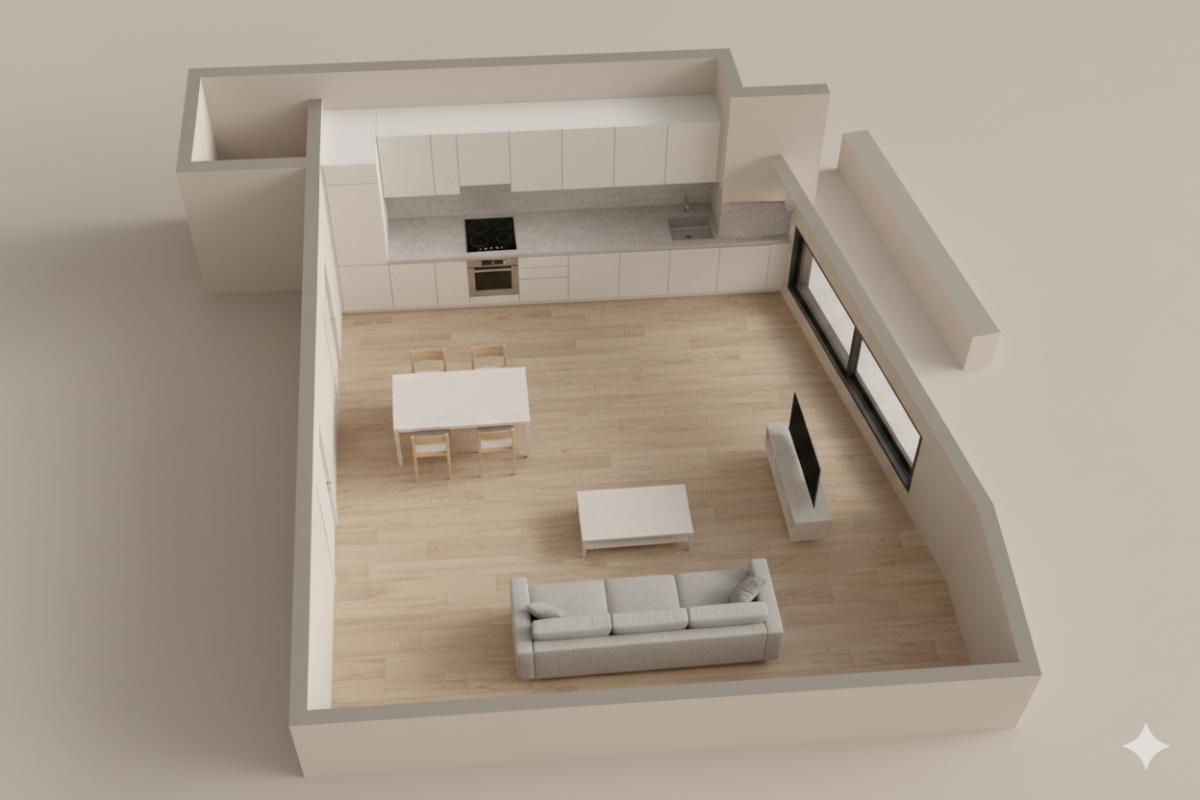 Un séjour spacieux avec cuisine ouverte de plus de 34 m², baigné de lumière