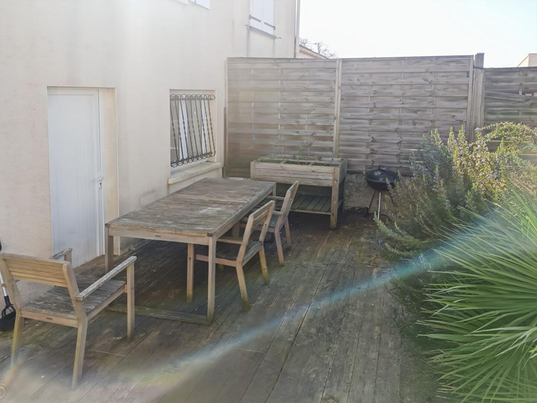 une jolie terrasse , un jardin complète le charme de cette maison,