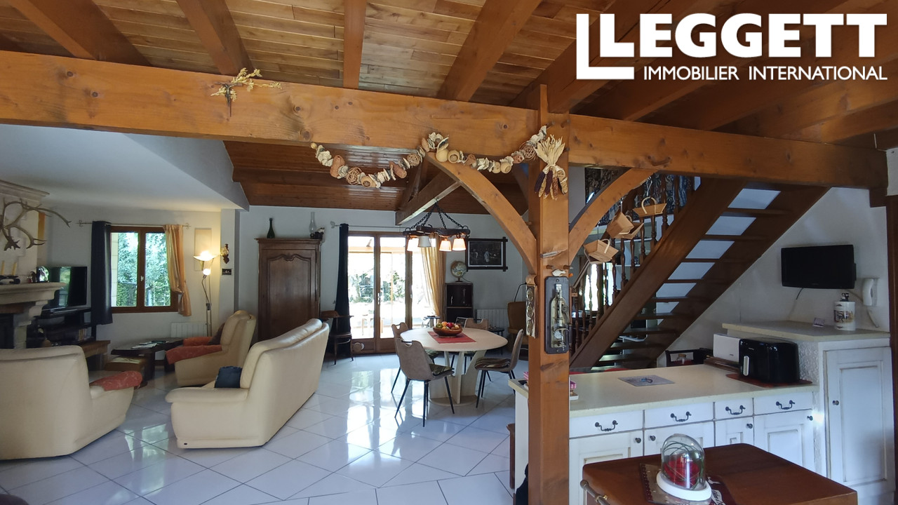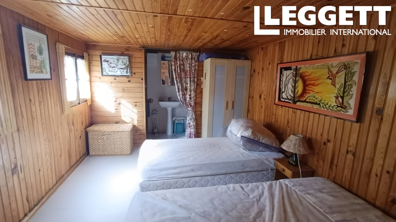 La maison principale se compose d'une grande pièce de vie avec des plafonds haut et cuisine, mezzanine et insert à bois - 2 chambres - 1 bureau - 1 wc indépendant - buanderie et cave.