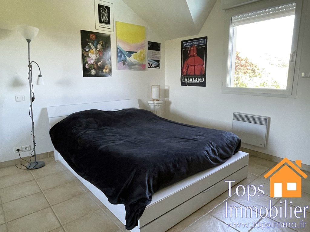 A l'étage, un espace de 25m2 en mezzanine dessert 2 chambres de 15 et 17m2, ainsi qu'une salle d'eau de 8m2.