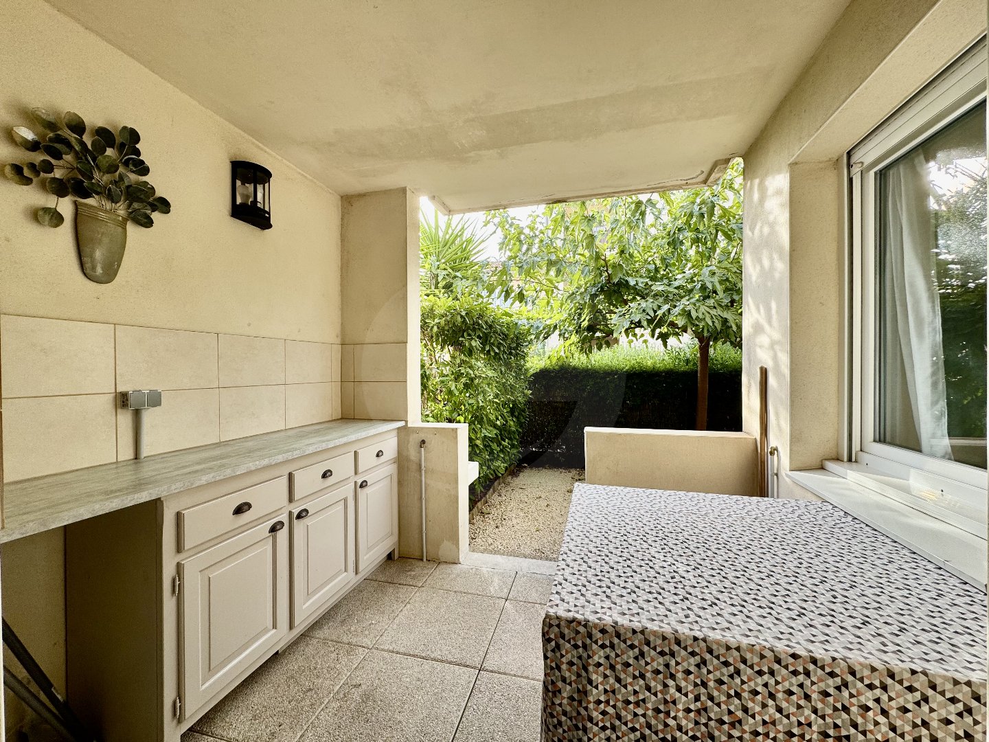Il se compose d'une belle pièce de vie d'environ 21 m², d'une chambre séparée, d'une salle de bains, ainsi que une terrasse couverte aménagée en cuisine d'été avec eau et électricité. Vous bénéficierez également d'un jardinet privatif de 20 m², parfait pour profiter des beaux jours.