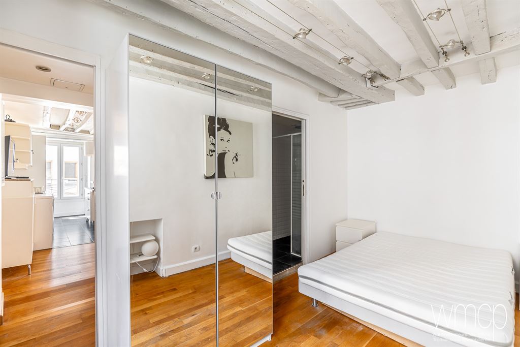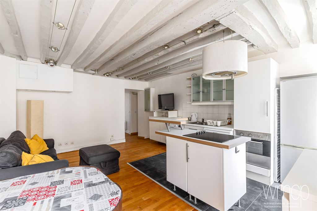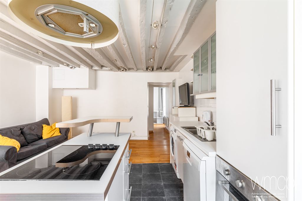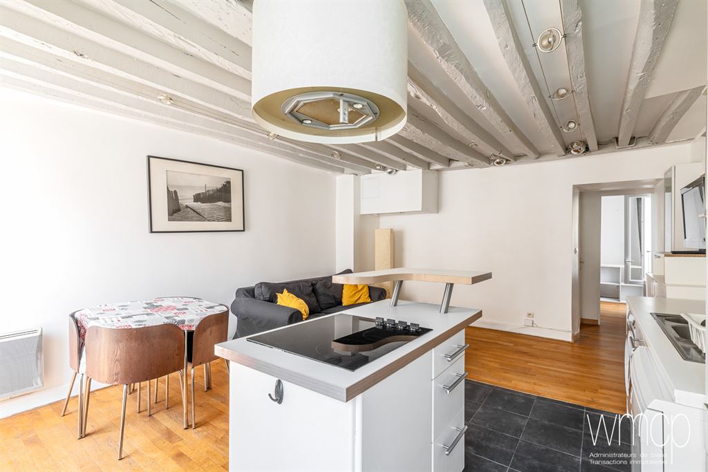 Paris 7ème, Quartier Gros Caillou, proche rue Cler et rue Saint Dominique, un charmant 2pièces de 37 m2 (36,44 m2 Loi Carrez), au 4ème étage sans ascenseur, comprenant : entrée, spacieux séjour avec ilot cuisine, 2 fenêtres double vitrage sur rue, une chambre sur cour calme et lumineuse, salle de douche et wc séparés. Plan idéal traversant sur rue et cour. parquet, poutres apparentes, calme et soleil.