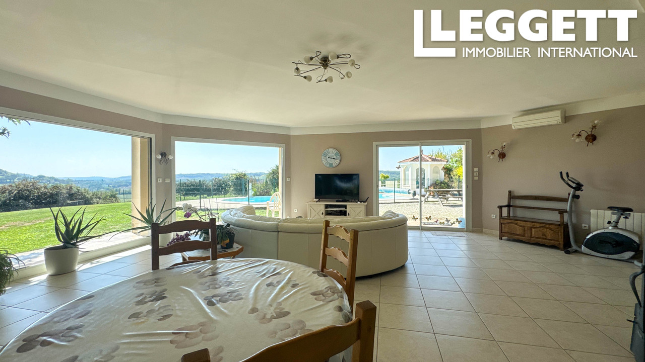 A40128NK82 - Une position dominante avec vue panoramique, à mi-chemin entre Montcuq et Lauzerte, pour cette maison spacieuse de haute qualité. La propriété bénéficie de toutes les commodités modernes telles que double vitrage, volets électriques, chauffage réversible et une fosse septique conforme. La propriété est entièrement clôturée. Jardin paysager avec piscine et arbres fruitiers.