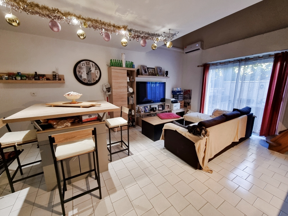 Appartement lumineux composée au rez-de-chaussée d'une entrée accès garage et cuisine ouverte sur salon donnant sur le jardin.